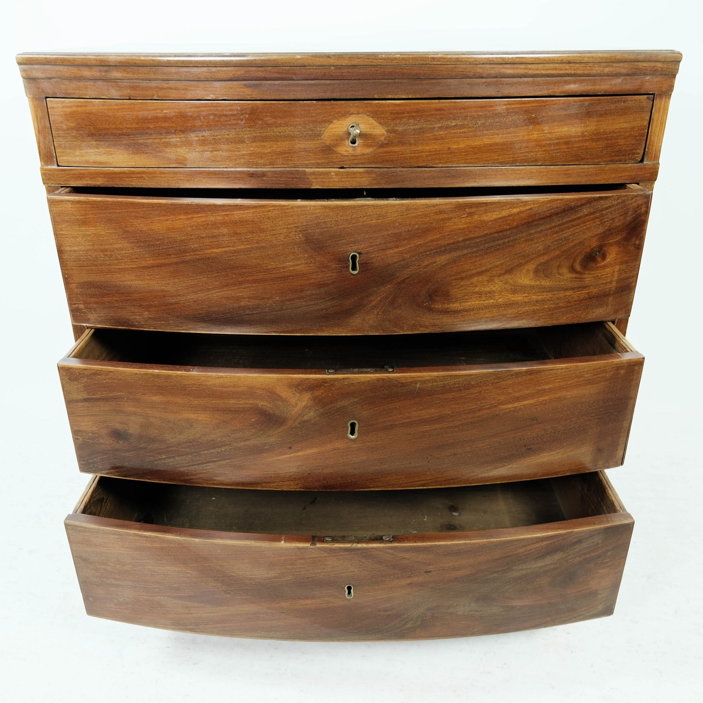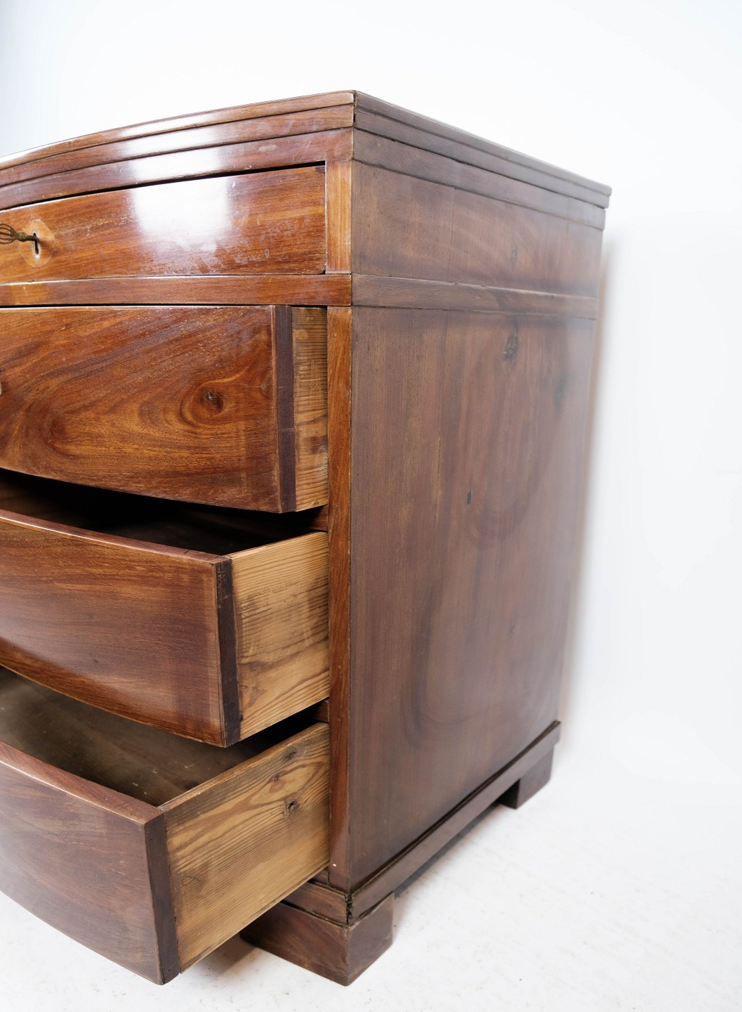 SolgtEmpire kommode af poleret mahogni med fire skuffer, fra omkring 1820. Kommoden er i flot antik stand.