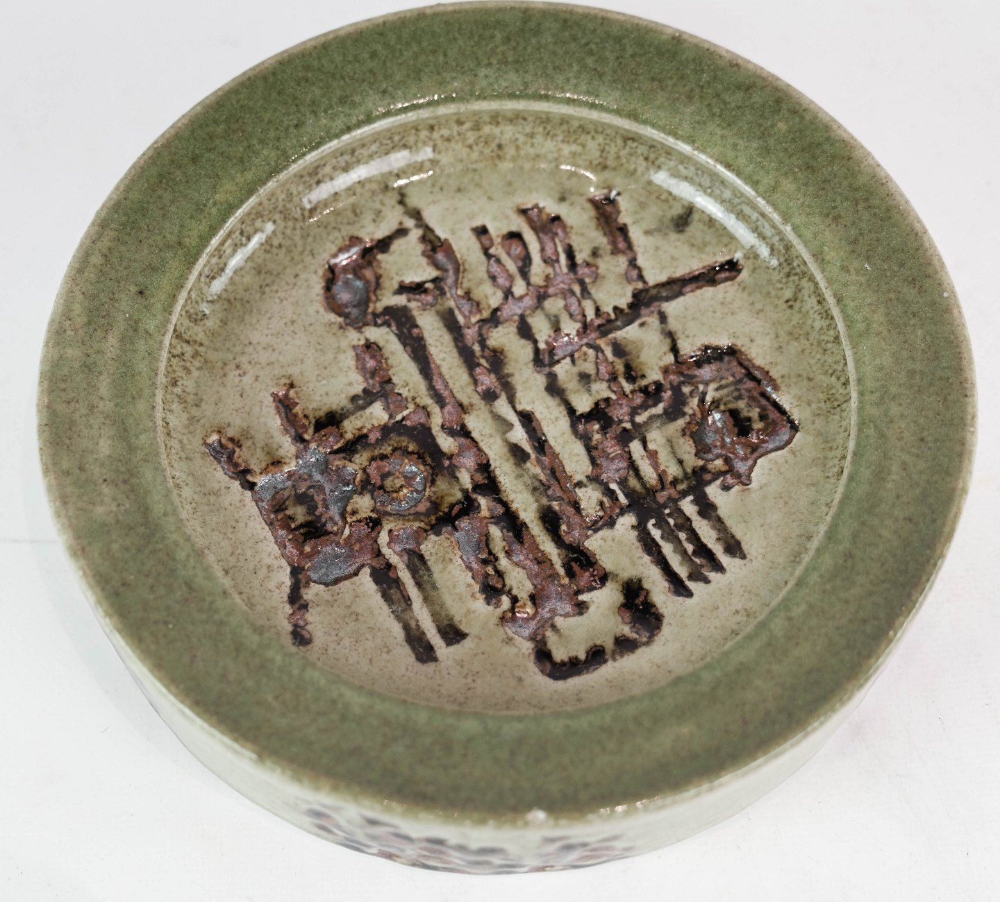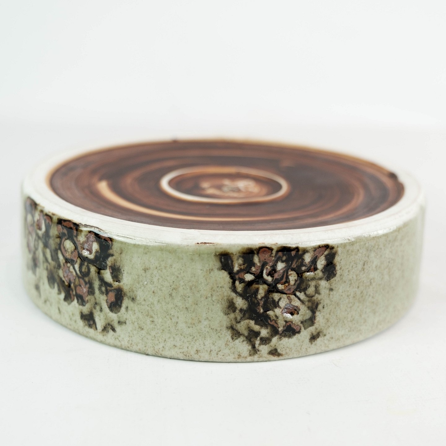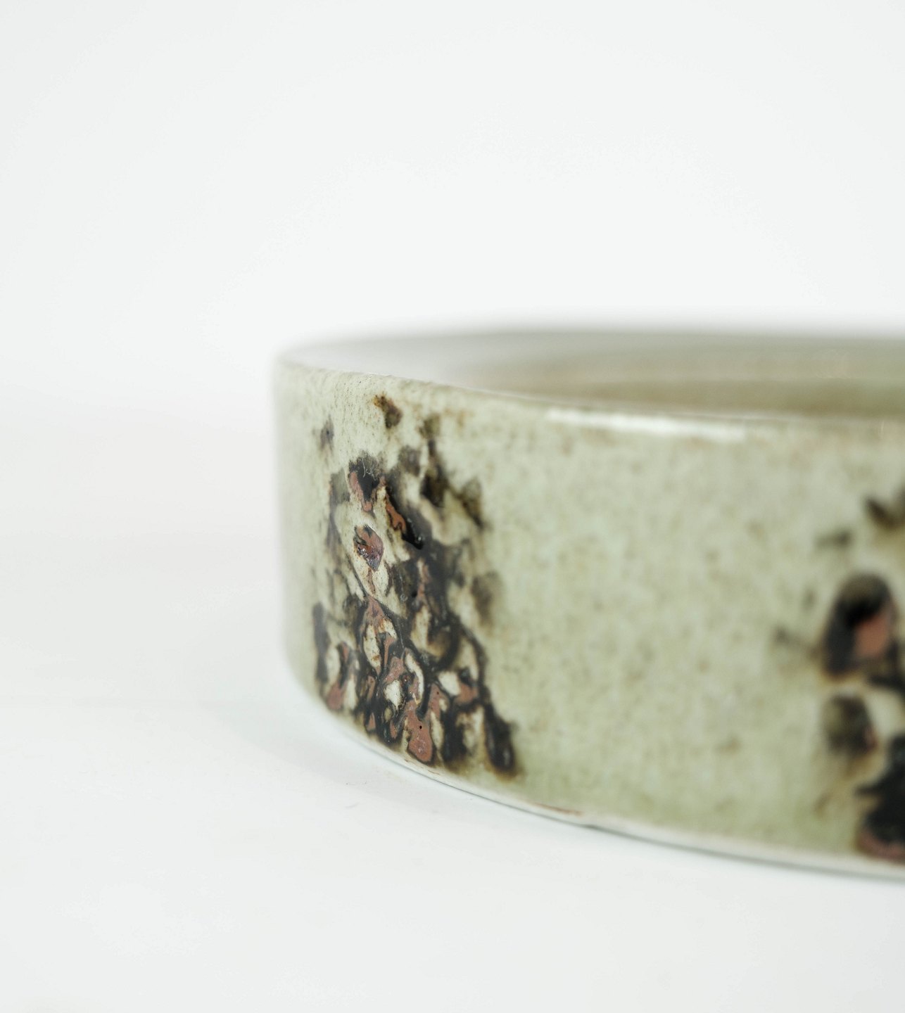 SolgtRundt keramik fad i grønne farver af den svenske kunster Carl-Harry Stålhane for Rørstrand. Fadet er i flot brugt stand.