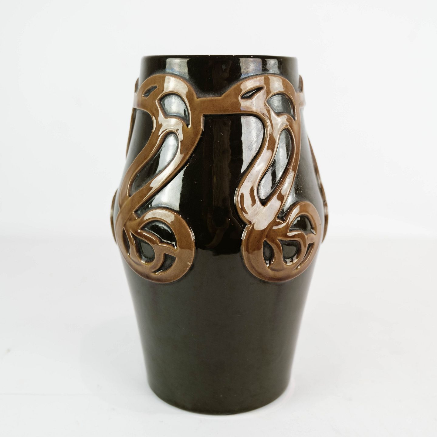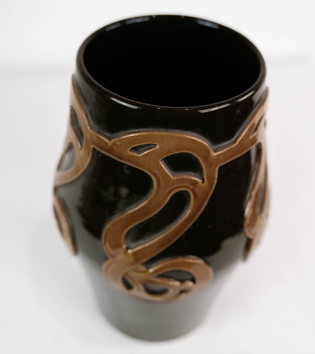 Keramik vase med brun glasur fra 1960erne. Vasen er i flot brugt stand.