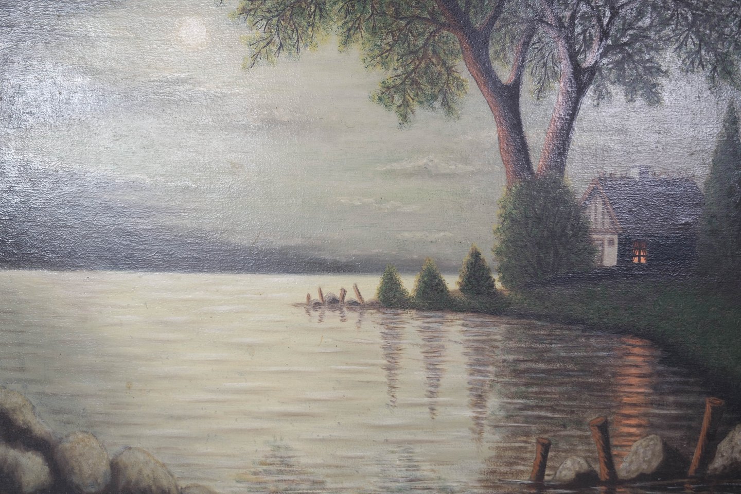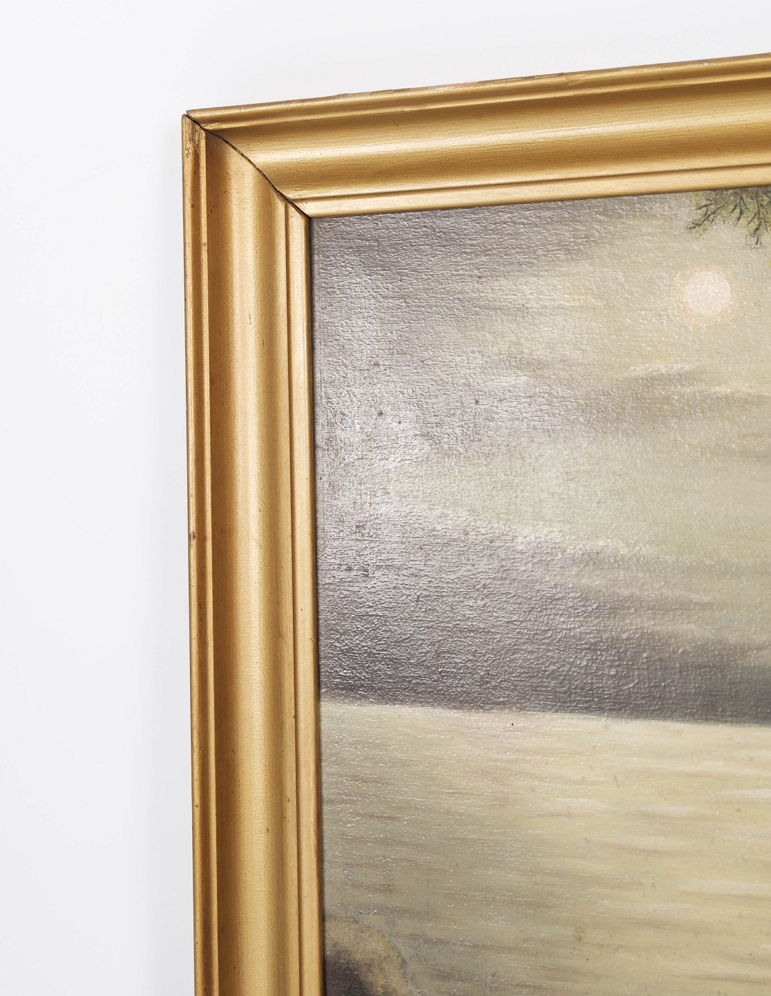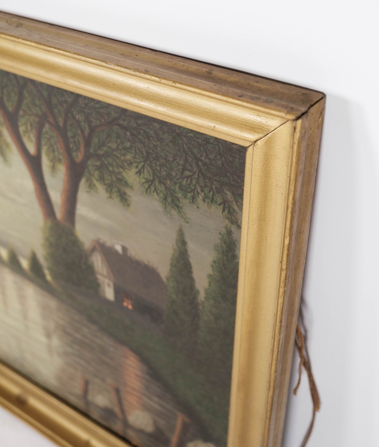Maleri på lærred med natur motiv i mørke farver og med forgyldt ramme fra 1920erne.