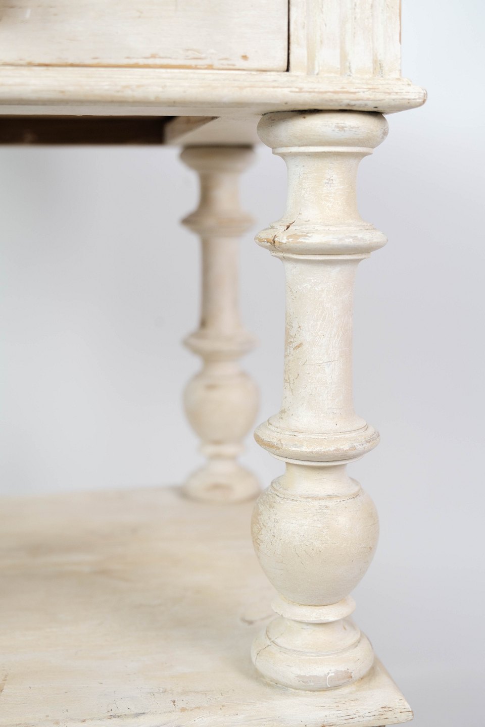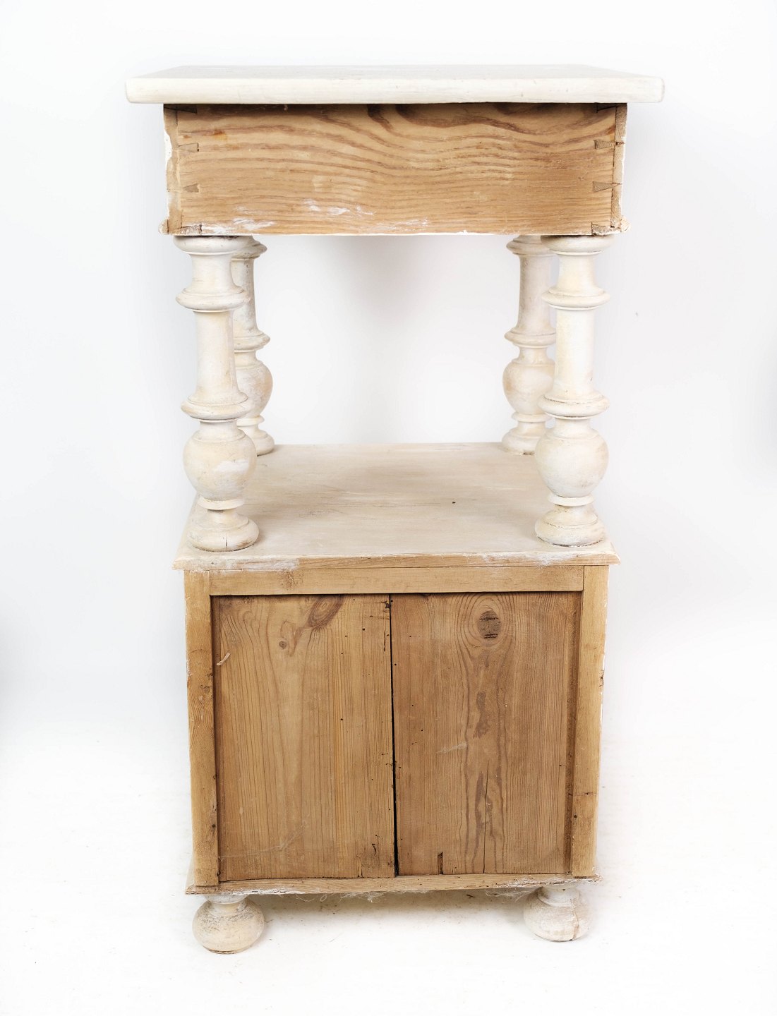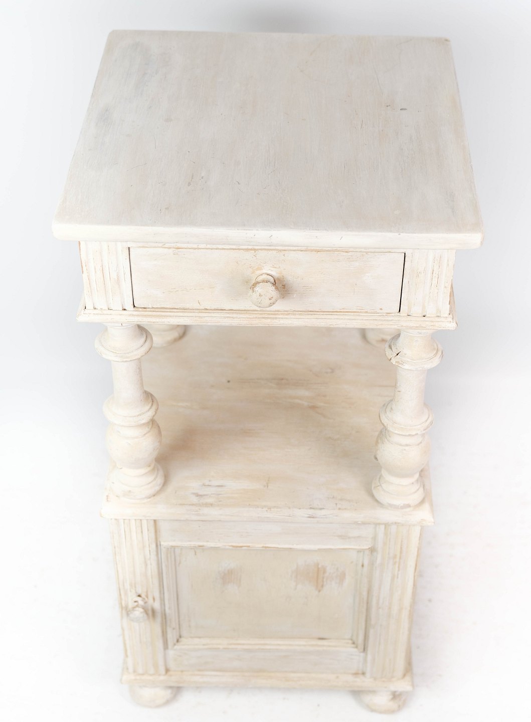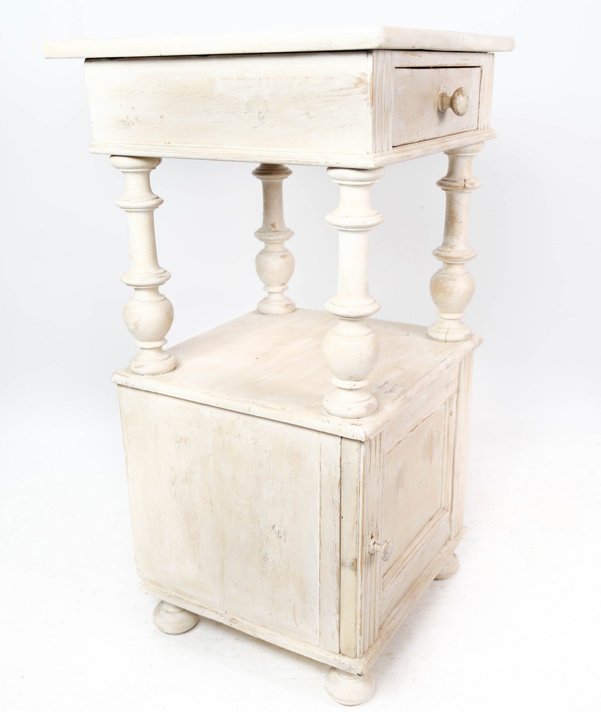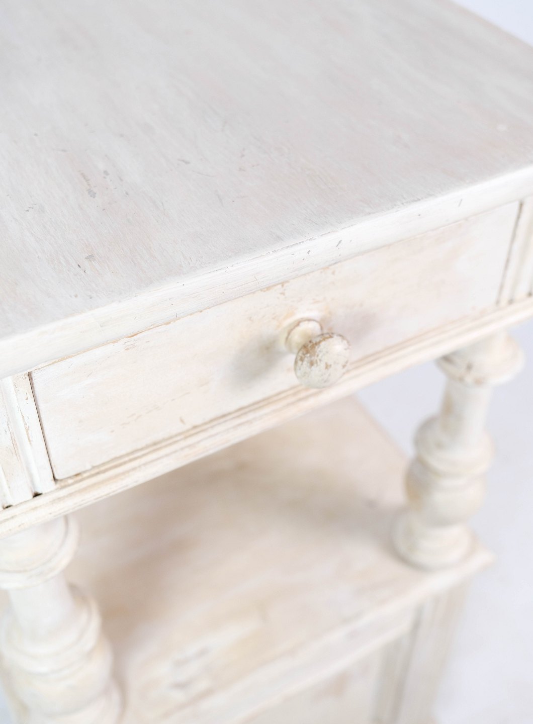 Mindre skab med skuffe af hvid malet træ, i flot antik stand fra 1920erne.