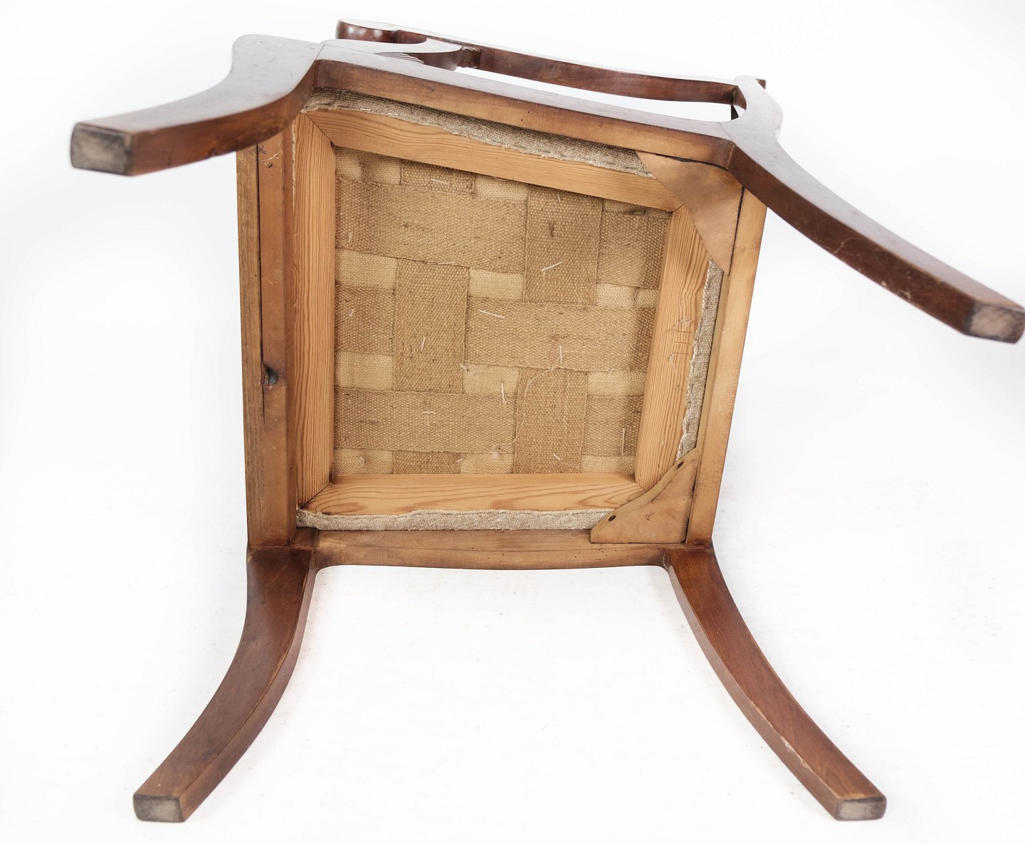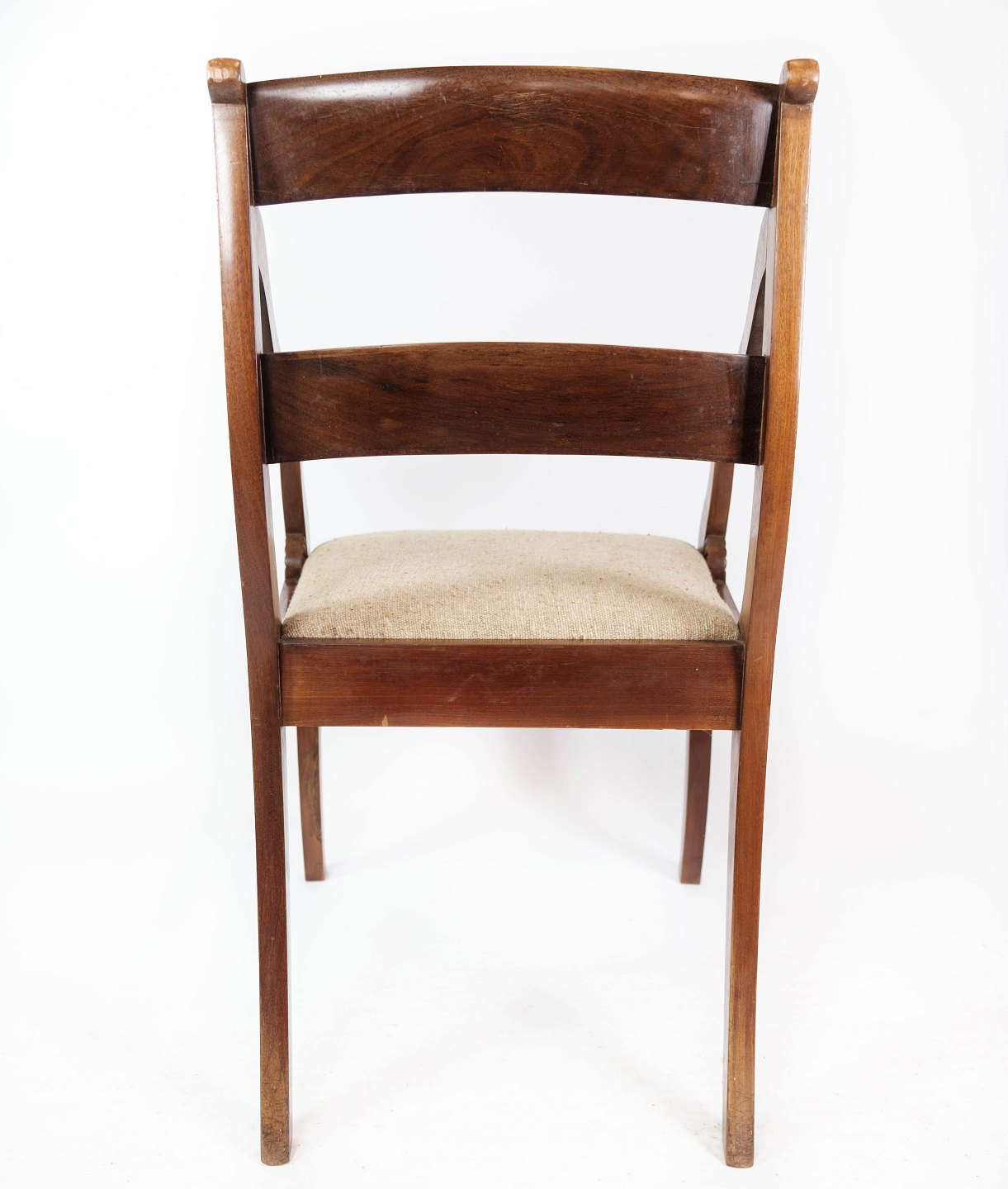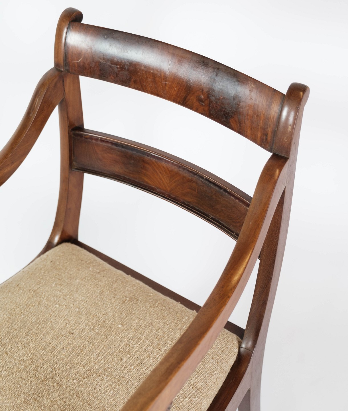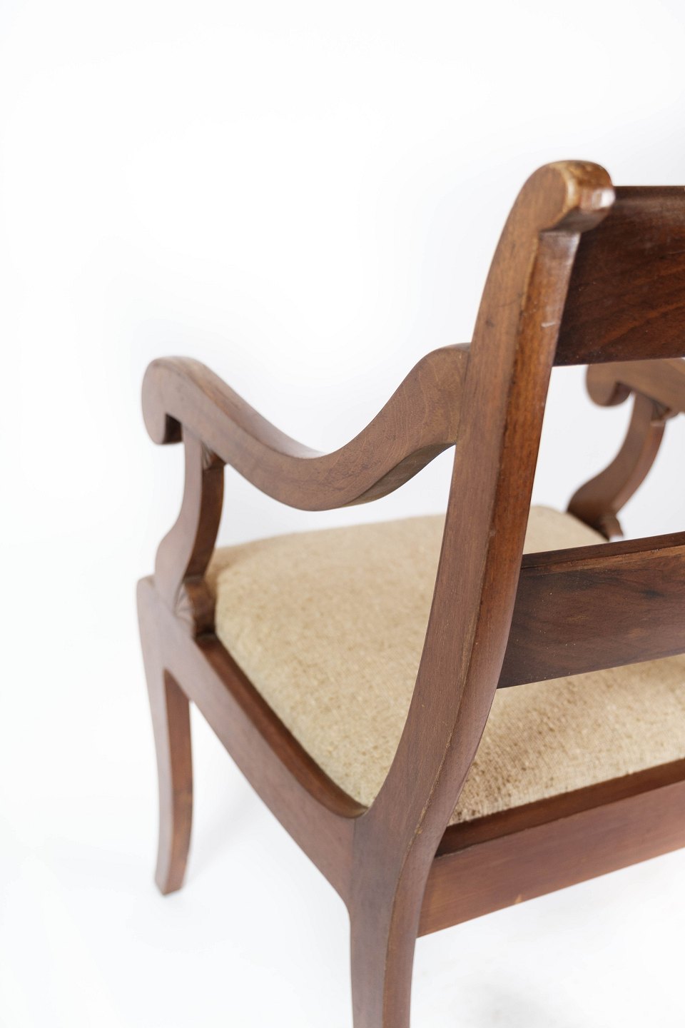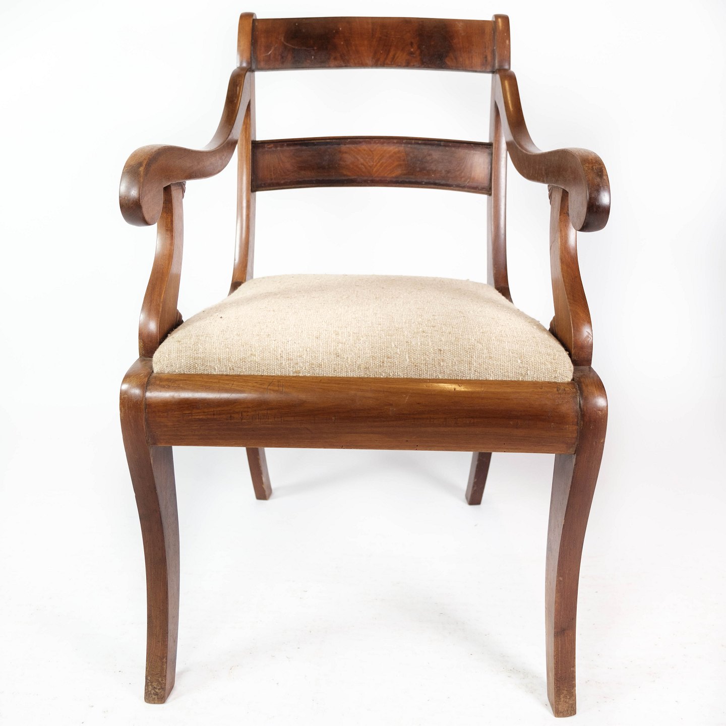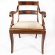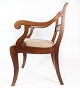 Sen empire armstol af mahogni og polstret med lyst stof, i flot antik stand fra 1860erne.