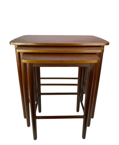 Dette indskudsbord er et eksempel på dansk design fra 1960'erne, lavet af teaktræ, der udstråler varme og elegance.