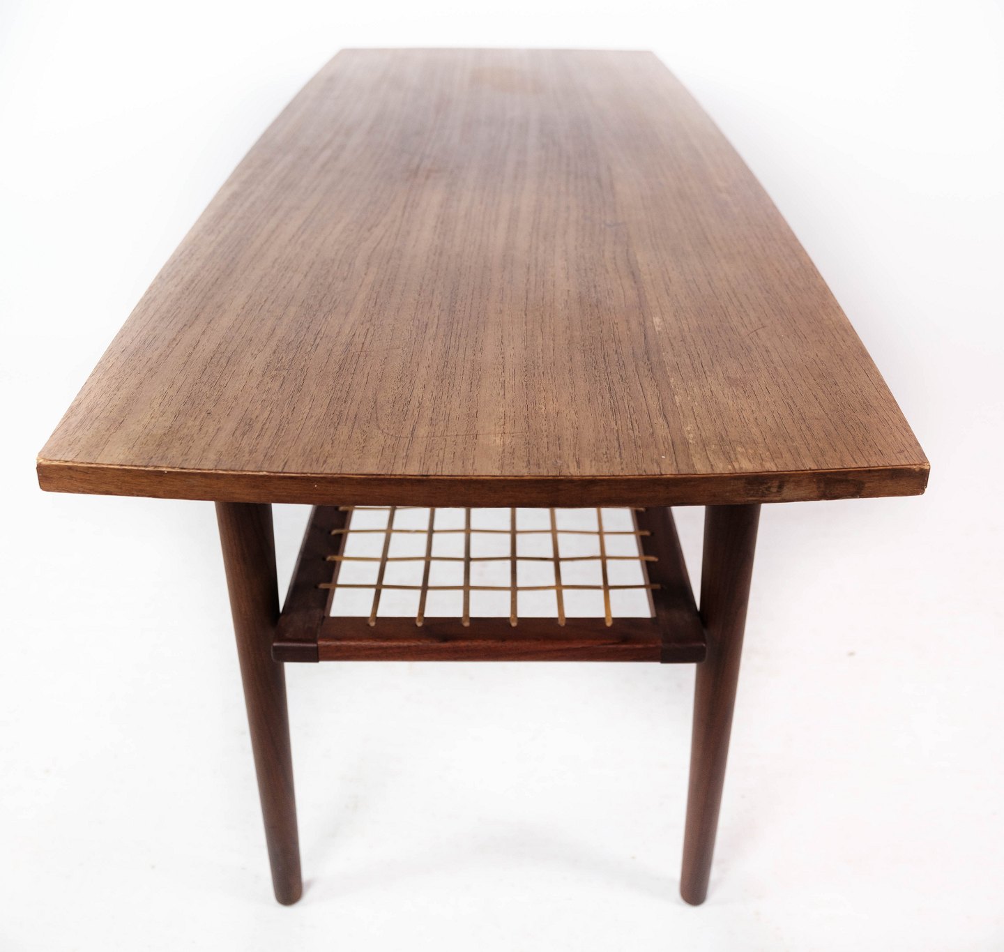 Sofabord i teak med flethyld af dansk design fra 1960erne.