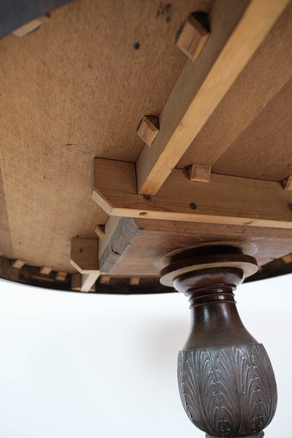 Antikt rundt spisebord i mahogni fra 1840erne.