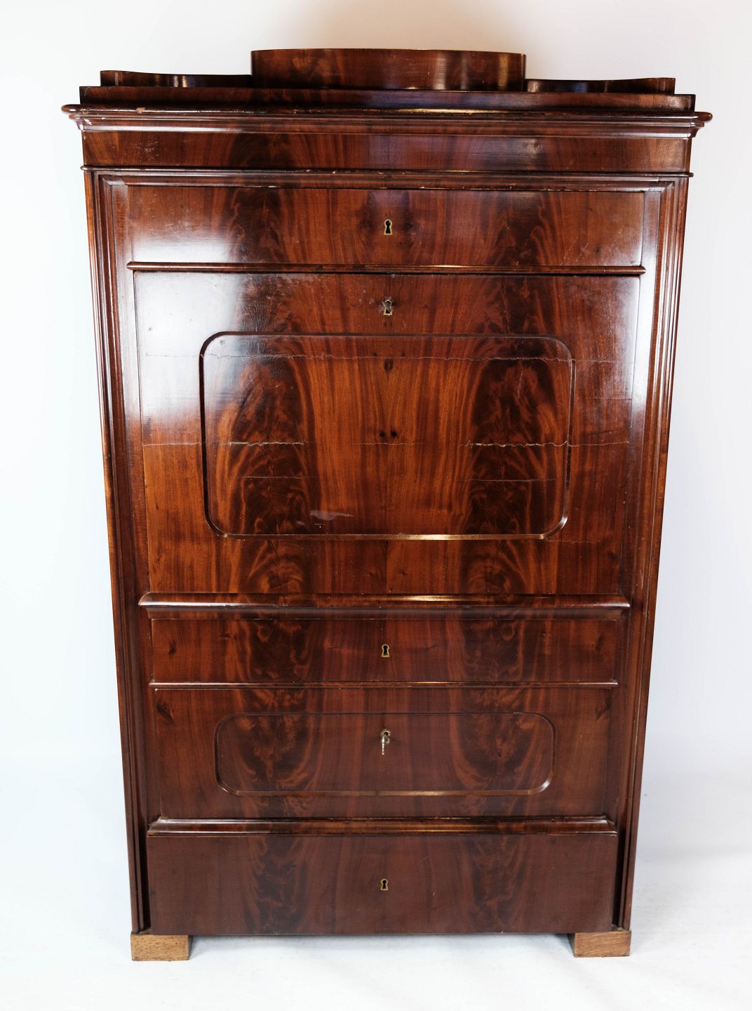 Sekretær af mahogni med intarsia, i flot antik stand fra 1840erne.