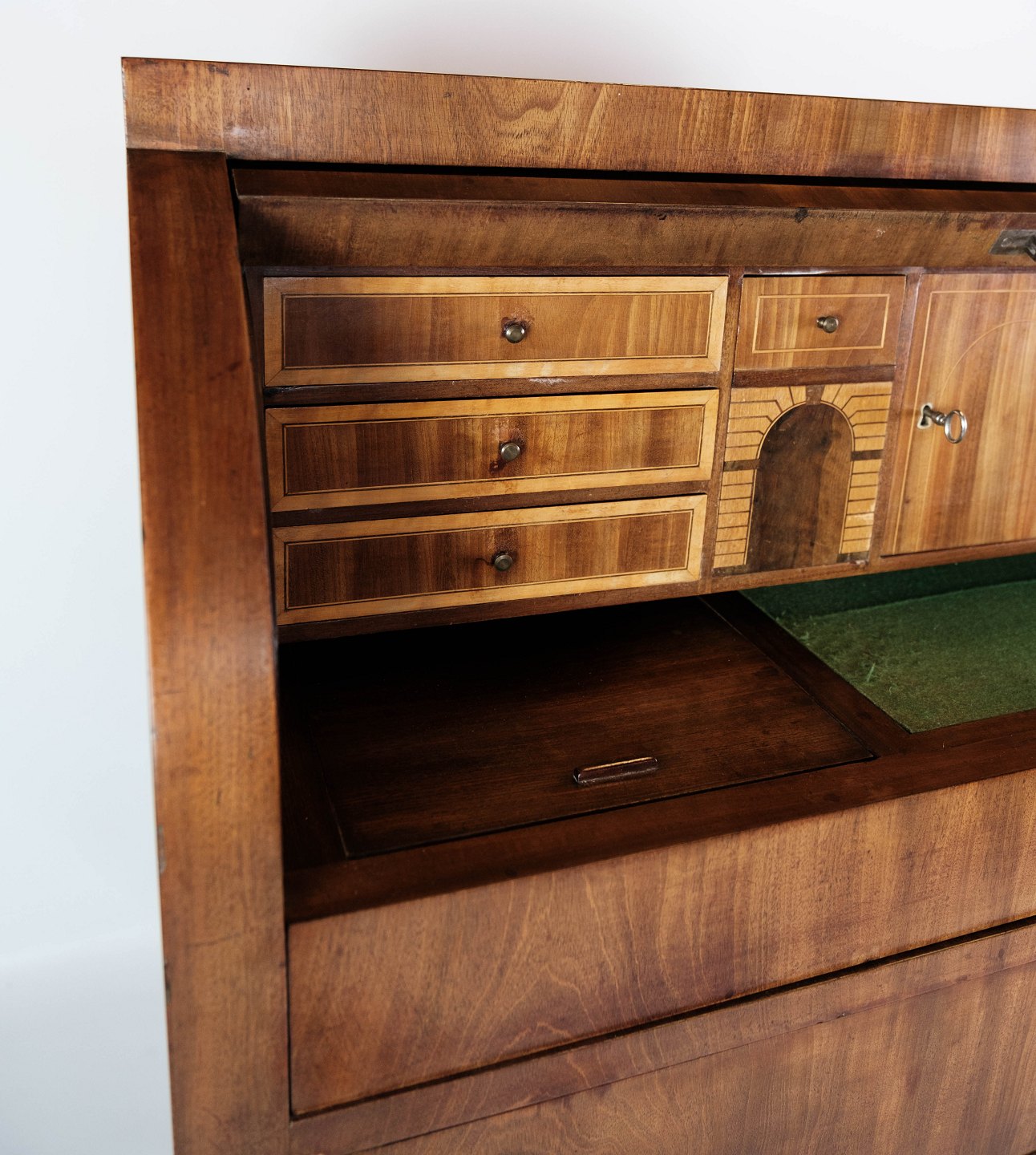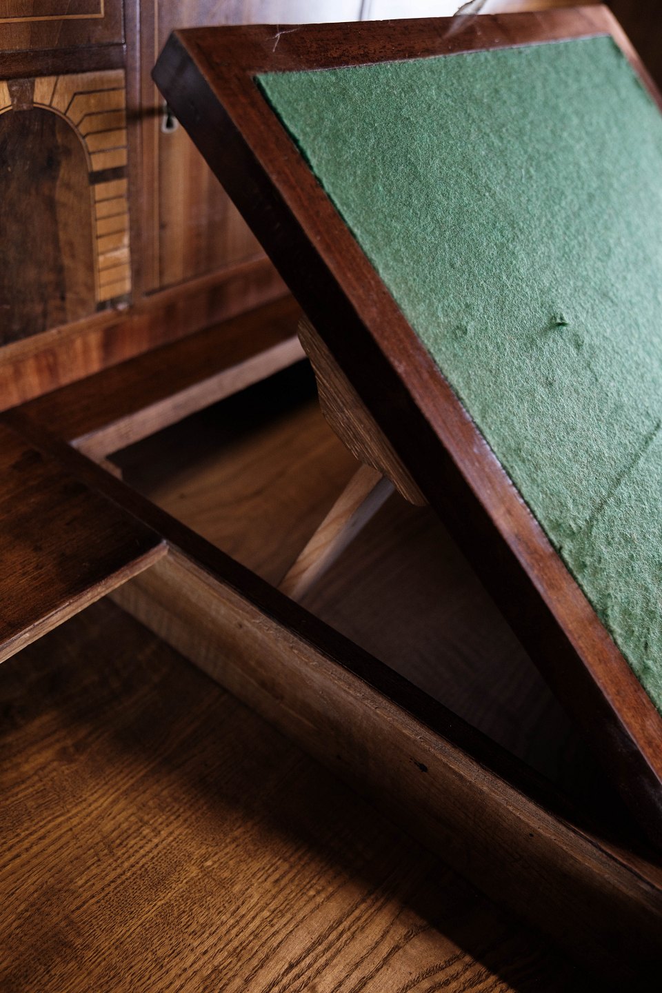SolgtSen empire chatol i mahogni med intarsia, i flot antik stand fra 1840erne.