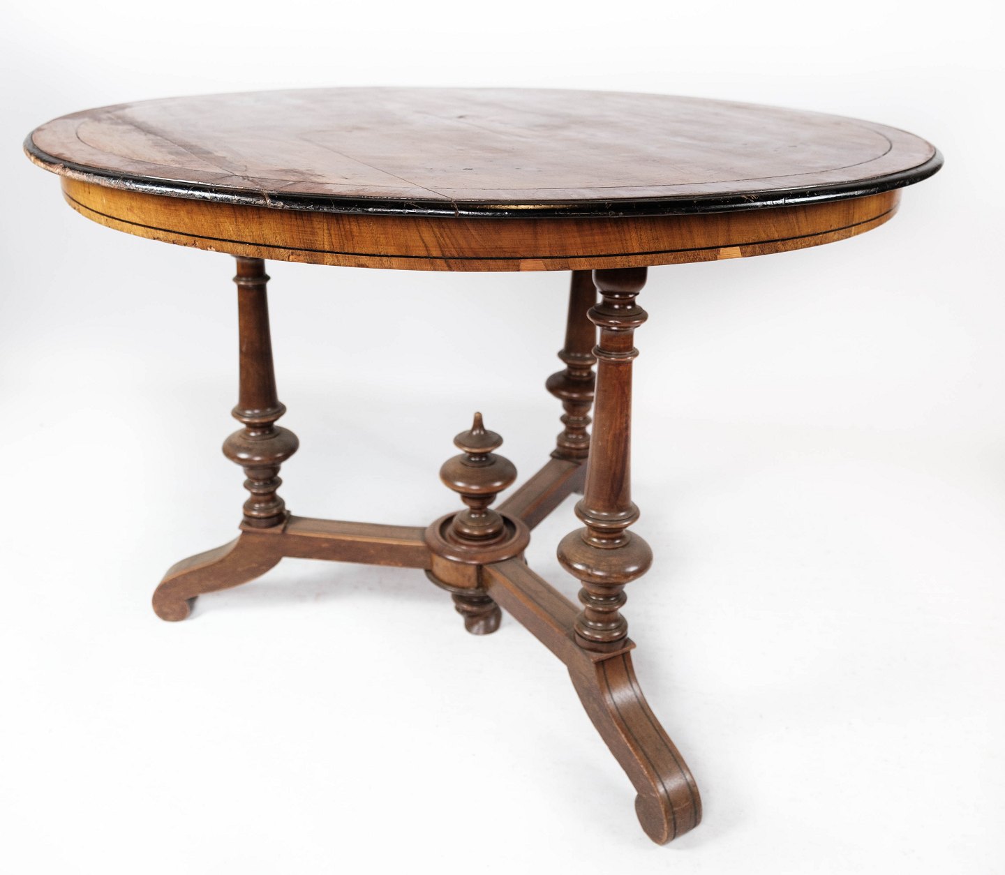 SolgtRundt spisebord af valnød med intarsia, i flot antik stand fra 1890erne.