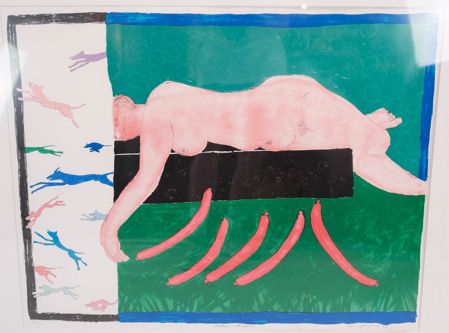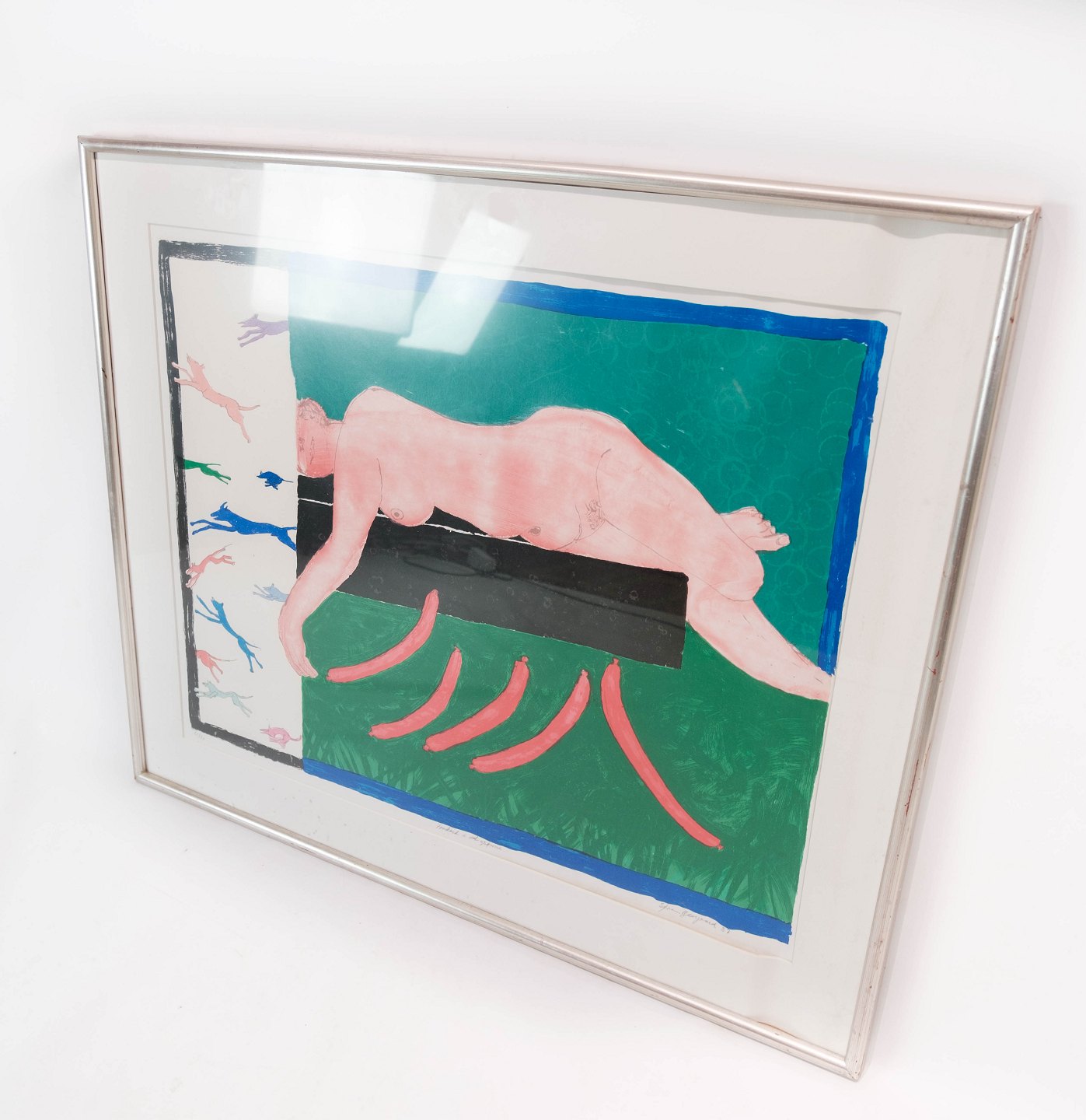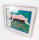 Maleri i grønne farver med sølv farvet ramme, ukendt signatur fra 1987.