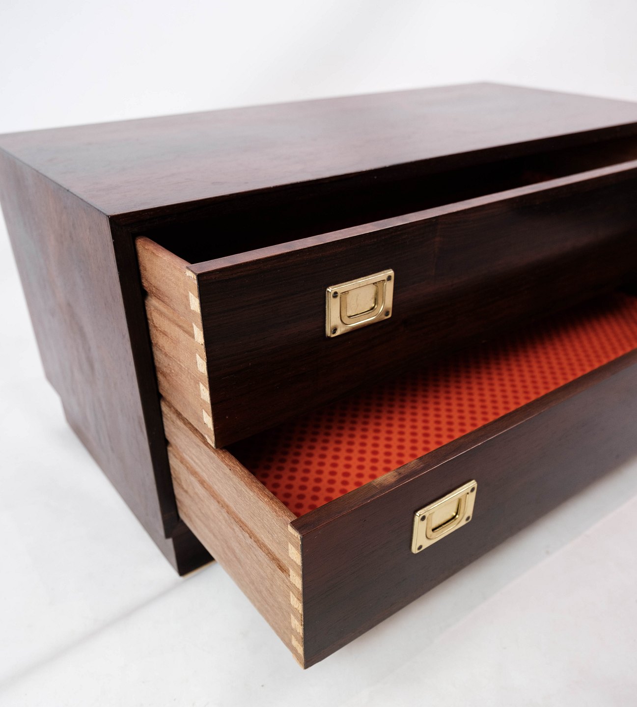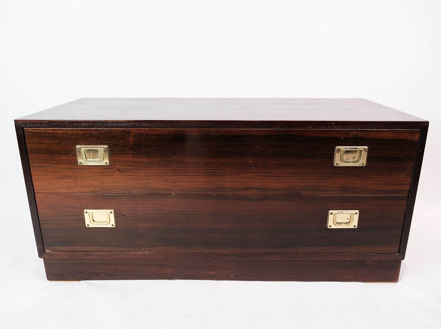 SolgtLav kommode i palisander med messing håndtag, af dansk design fra 1960erne. Kommoden er i flot brugt stand.