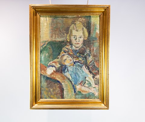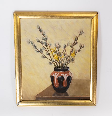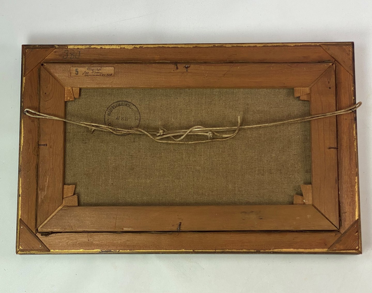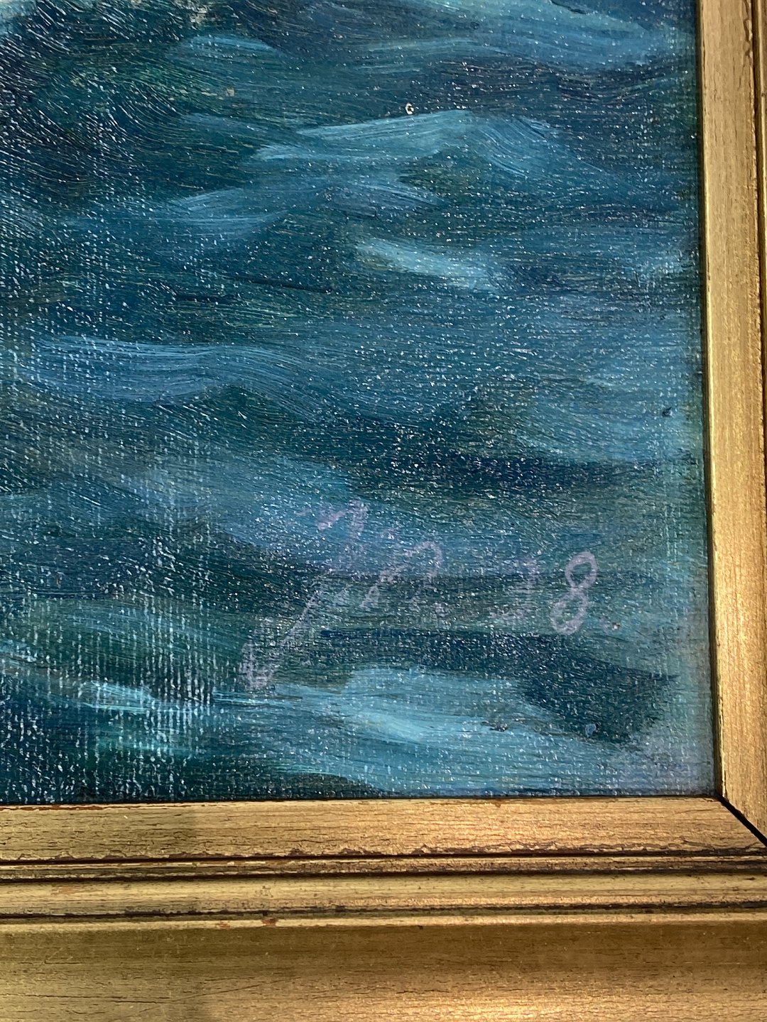 Maleri på lærred med marine motiv og forgyldt ramme signeret JN af Jens Nielsen i 1938.