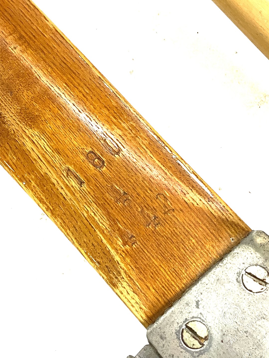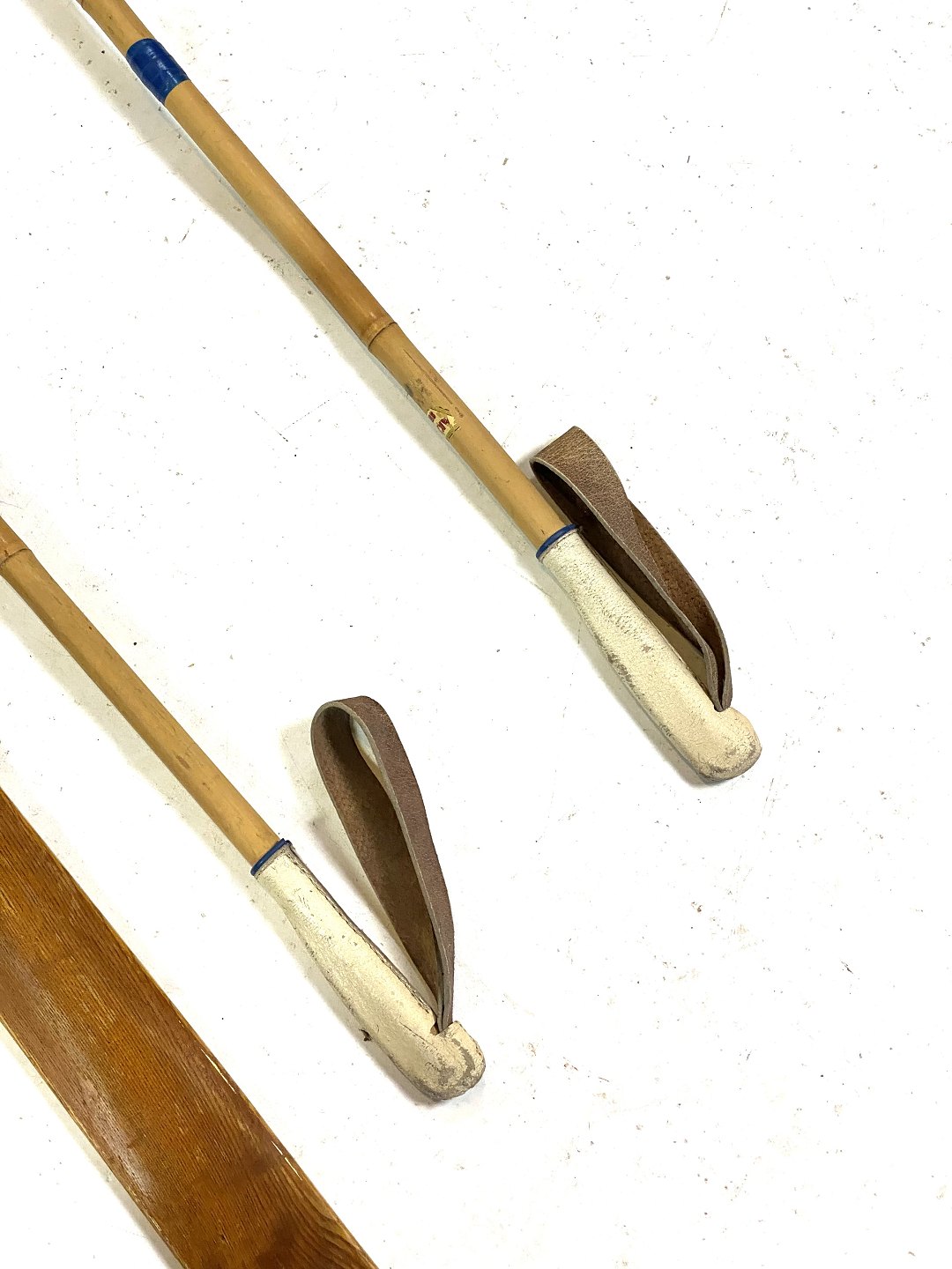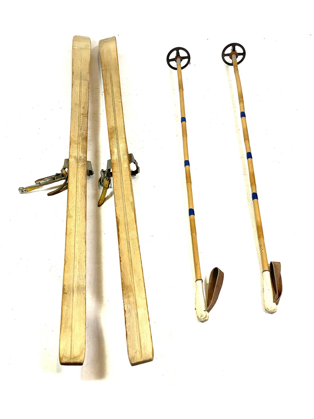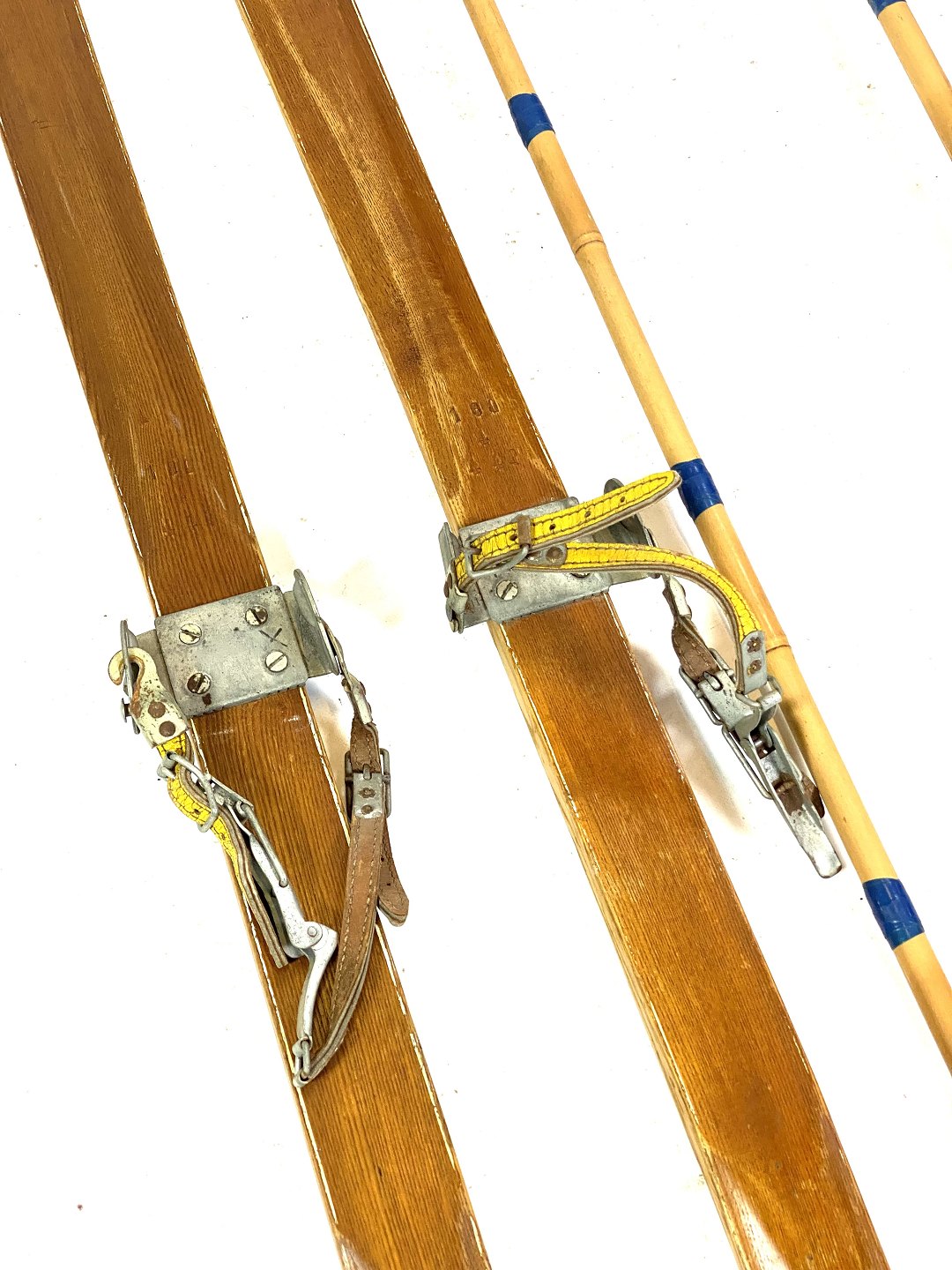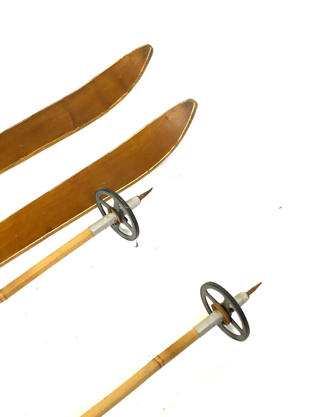 SolgtEt par ski med stave med flot patina fra omkring 1930erne.