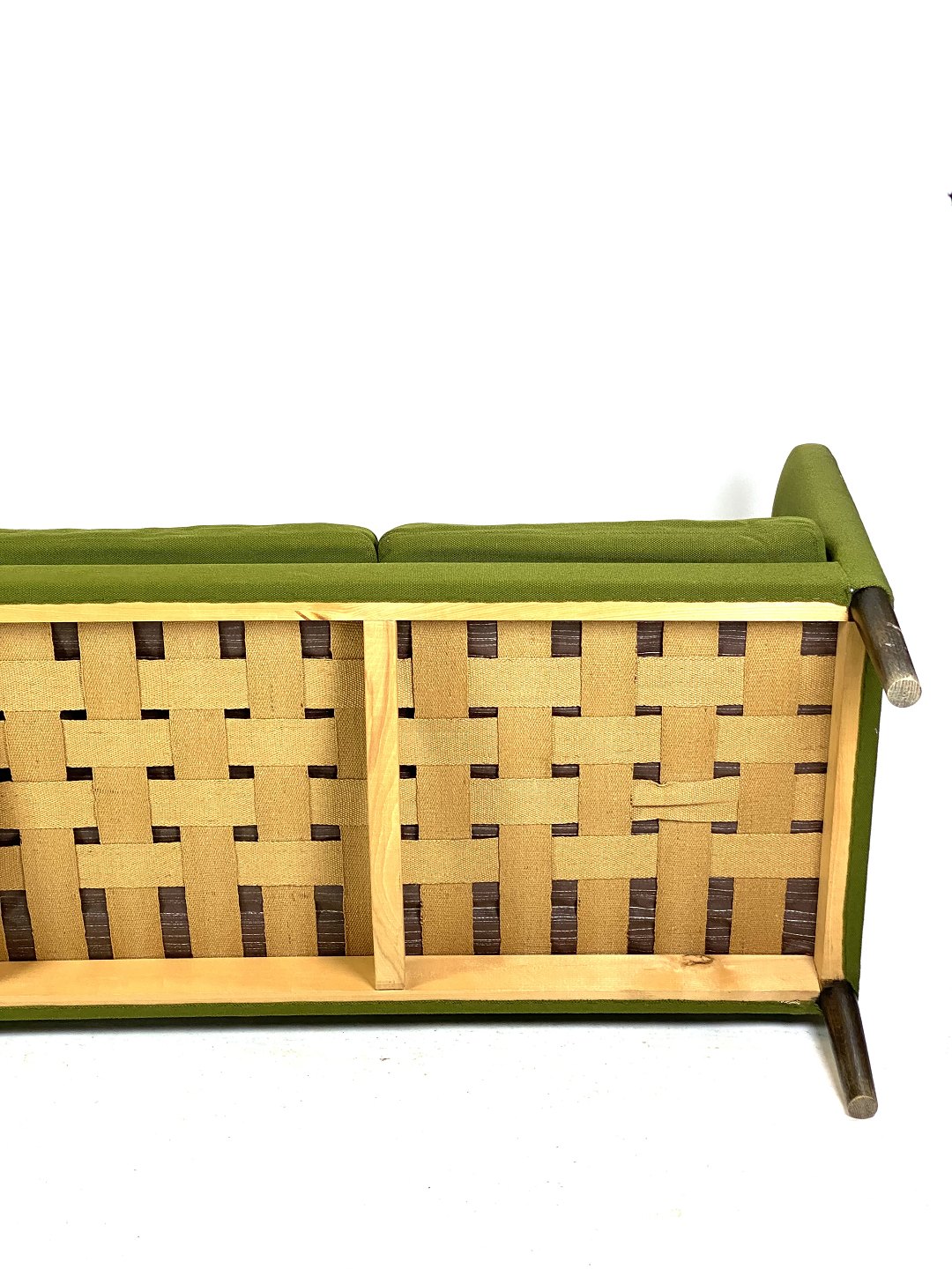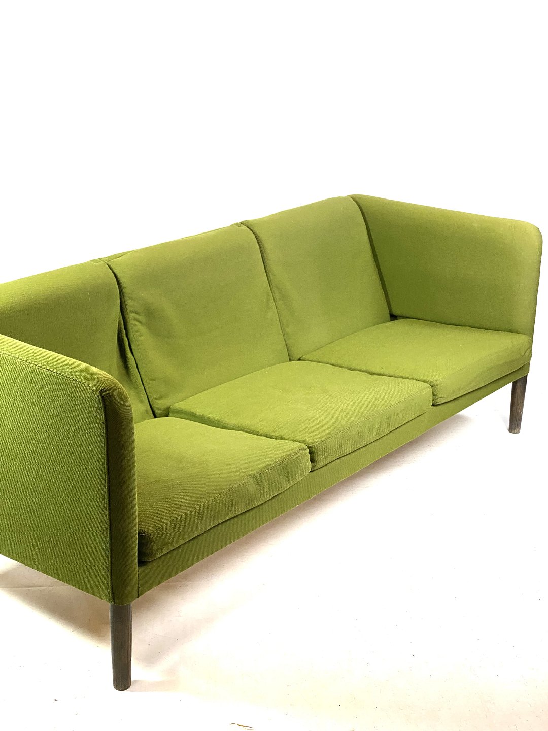 Den tre-personers sofa, Model AP 18S, betrukket med grønt uldstof og med ben af mørkt træ, blev designet af den danske arkitekt Hans J. Wegner i 1960. Wegner, kendt for sit enestående bidrag til dansk møbeldesign, skabte denne sofa med fokus på både æstetik og funktionalitet.