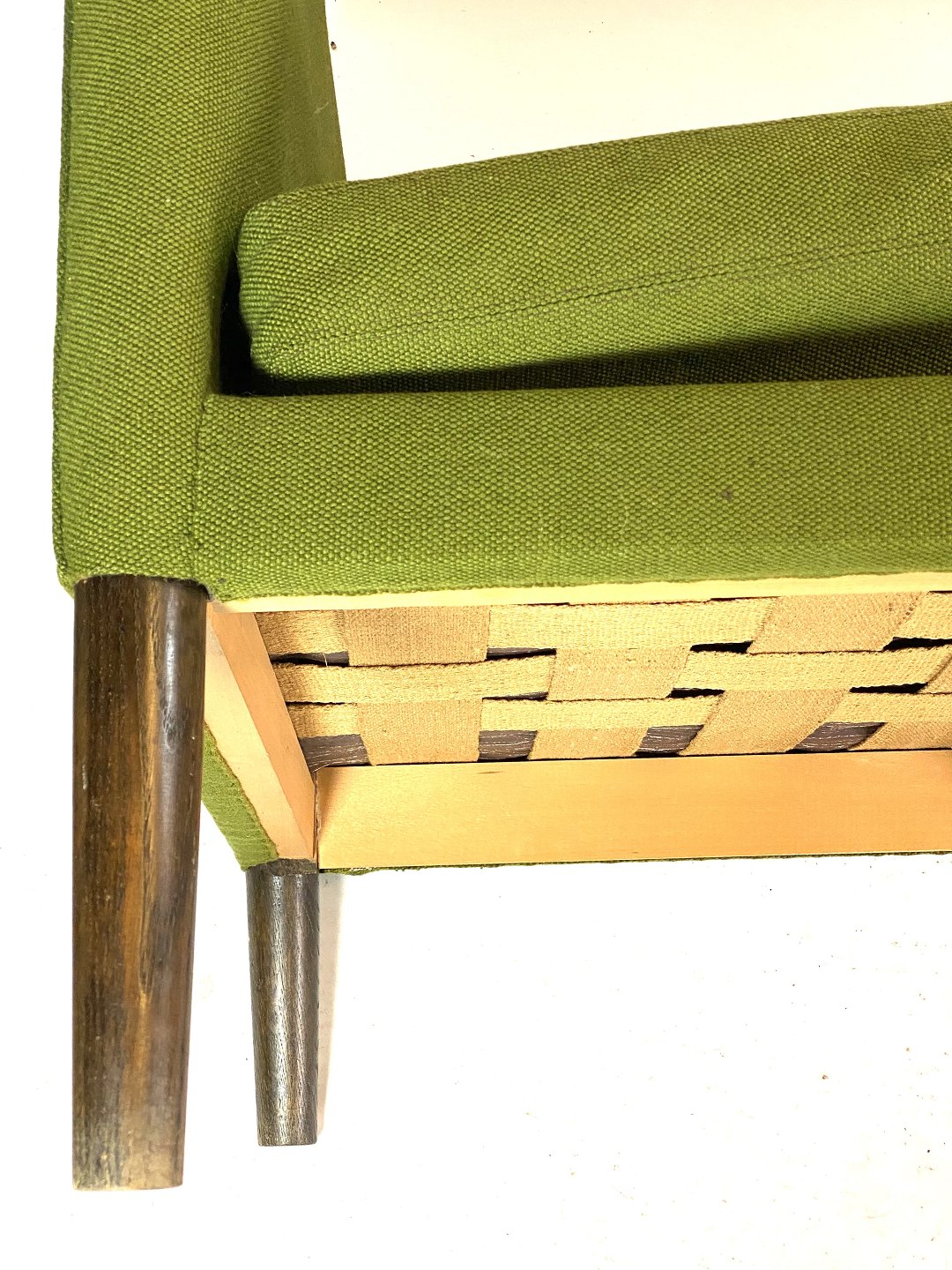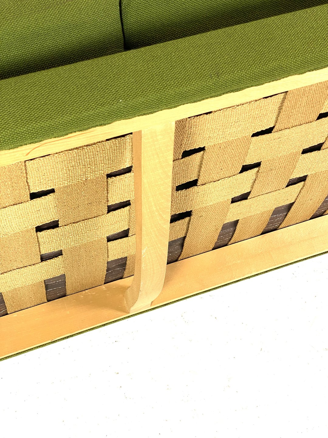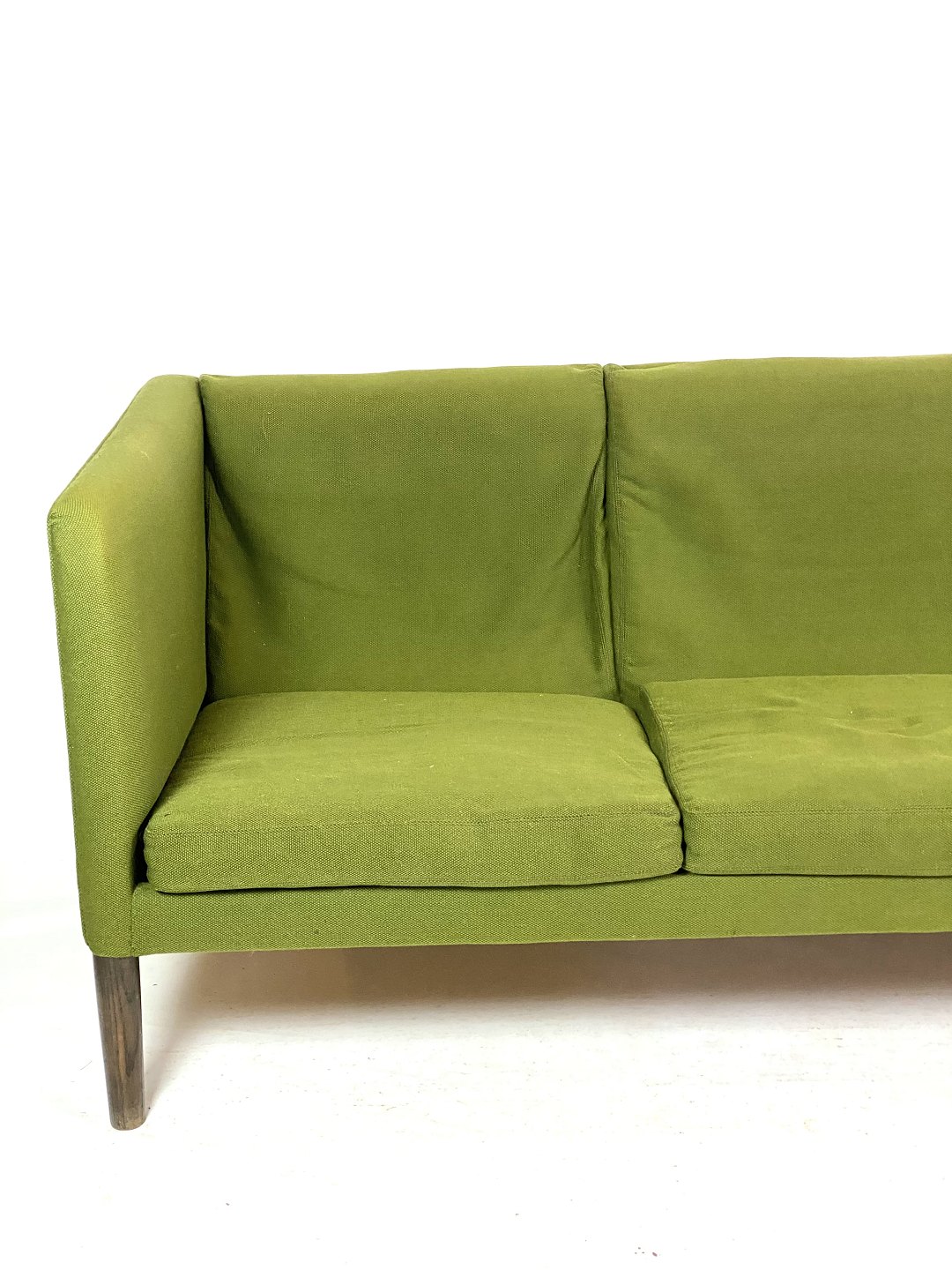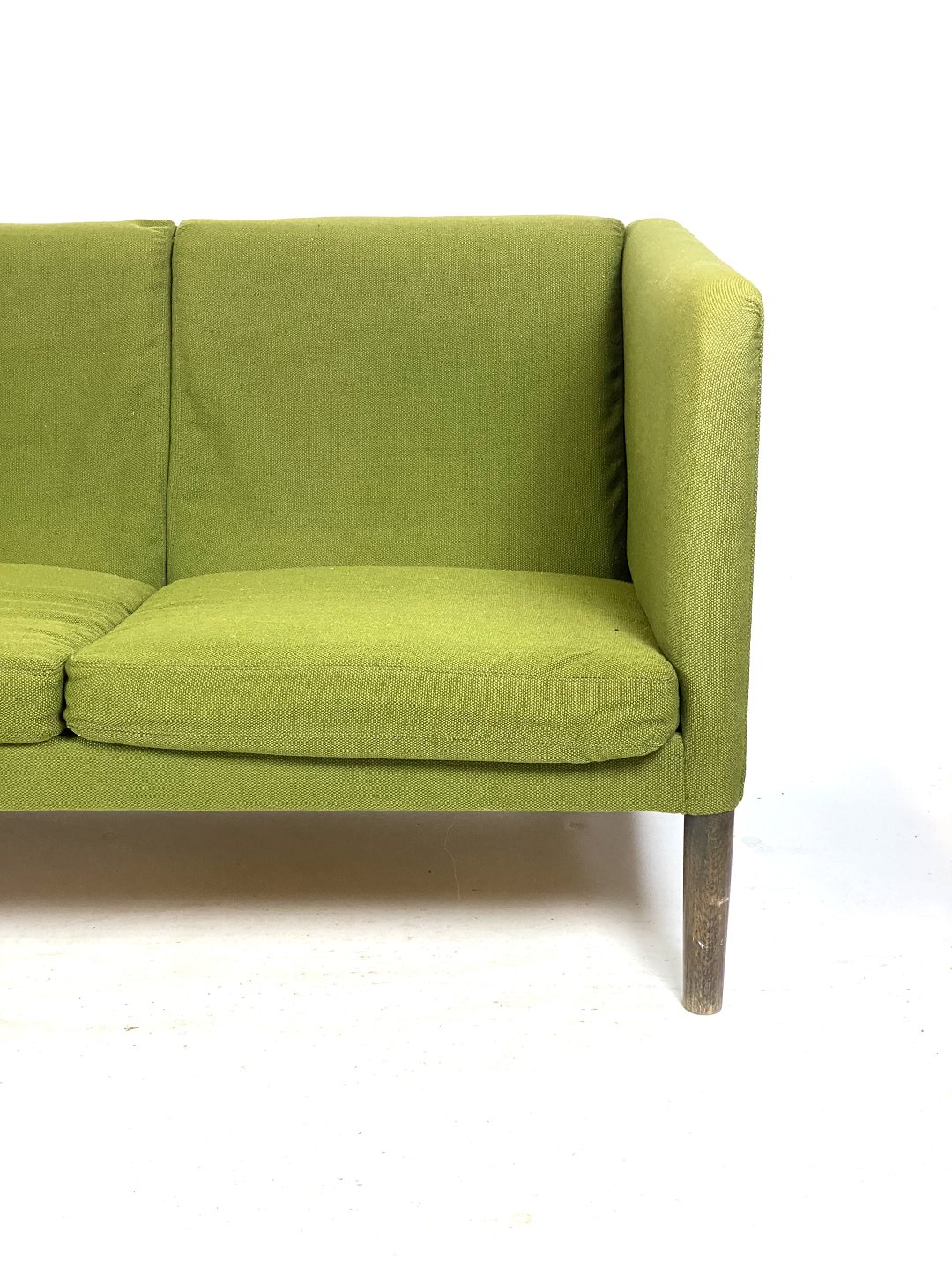 Sofaens grønne uldstof tilføjer et strejf af elegance og varme til enhver indretning, mens de mørke træben giver et subtilt kontrastfyldt element. Wegners enkle, men strukturerede design sikrer, at sofaen ikke kun er smuk at se på, men også behagelig at sidde i.