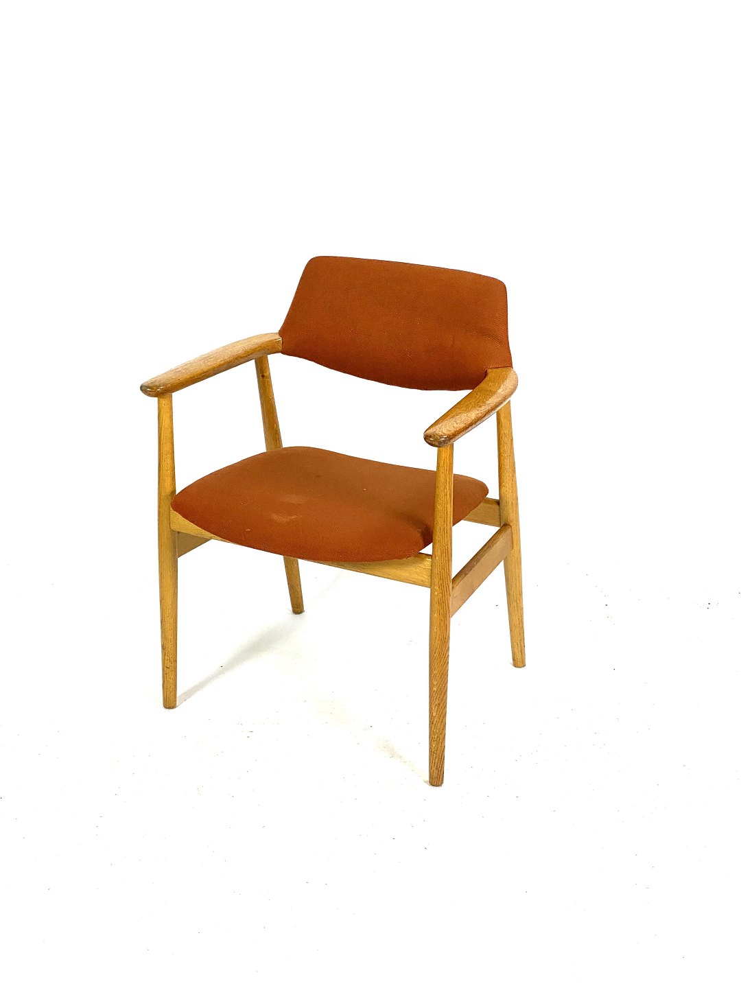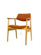 Seks armstole i eg og polstret med orange uldstof designet af Erik Kirkegaard fra 1960erne. Stolene er i flot brugt stand.