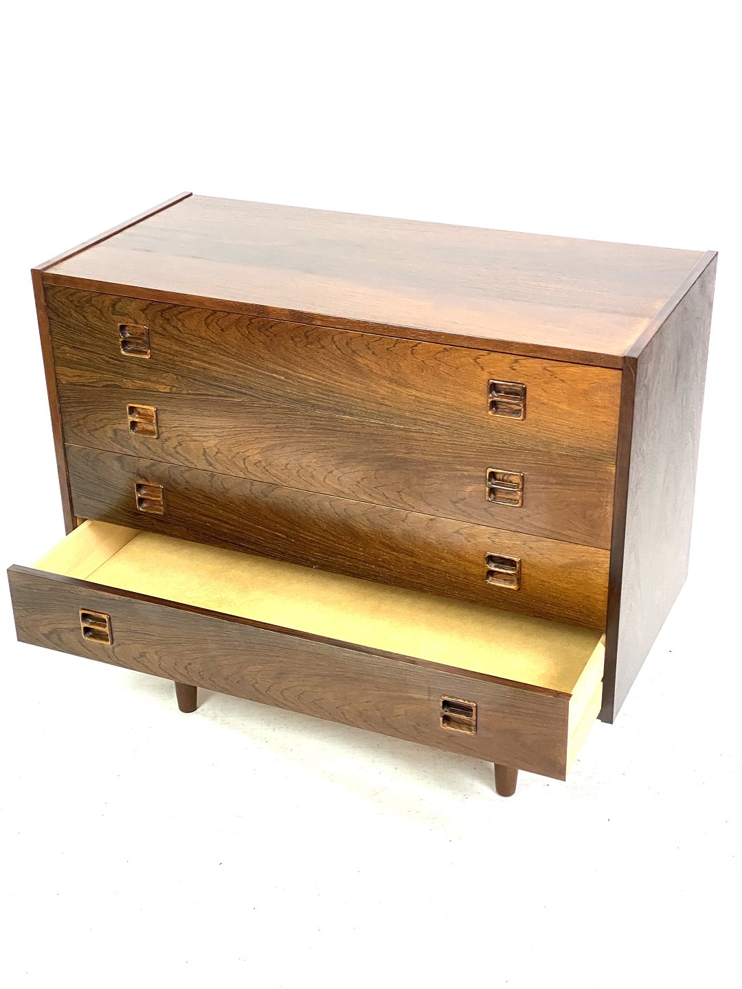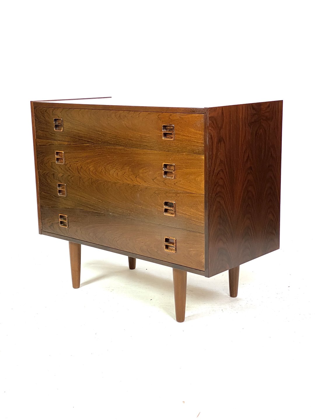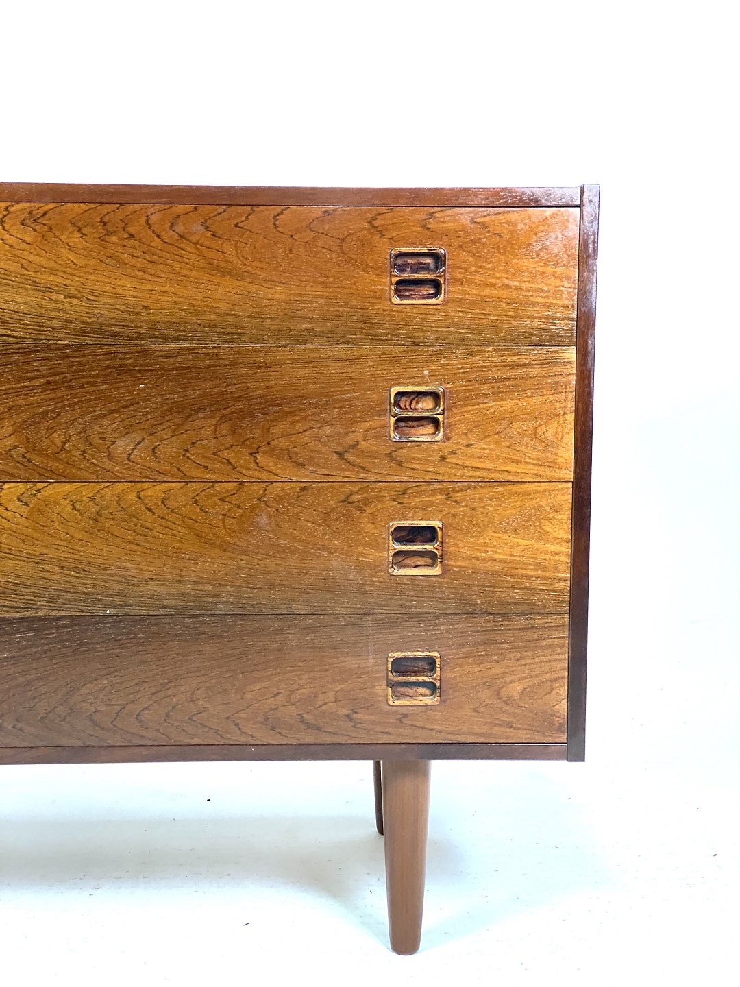 SolgtFå et stykke møbelhistorie med denne elegante kommode i palisander fra 1960'erne. Palisandertræet giver kommoden en varm og naturlig glød, samtidig med at det fremhæver den fine håndværksmæssige udførelse, der var typisk for møbeldesign på det tidspunkt.