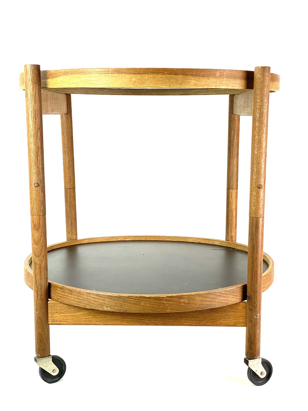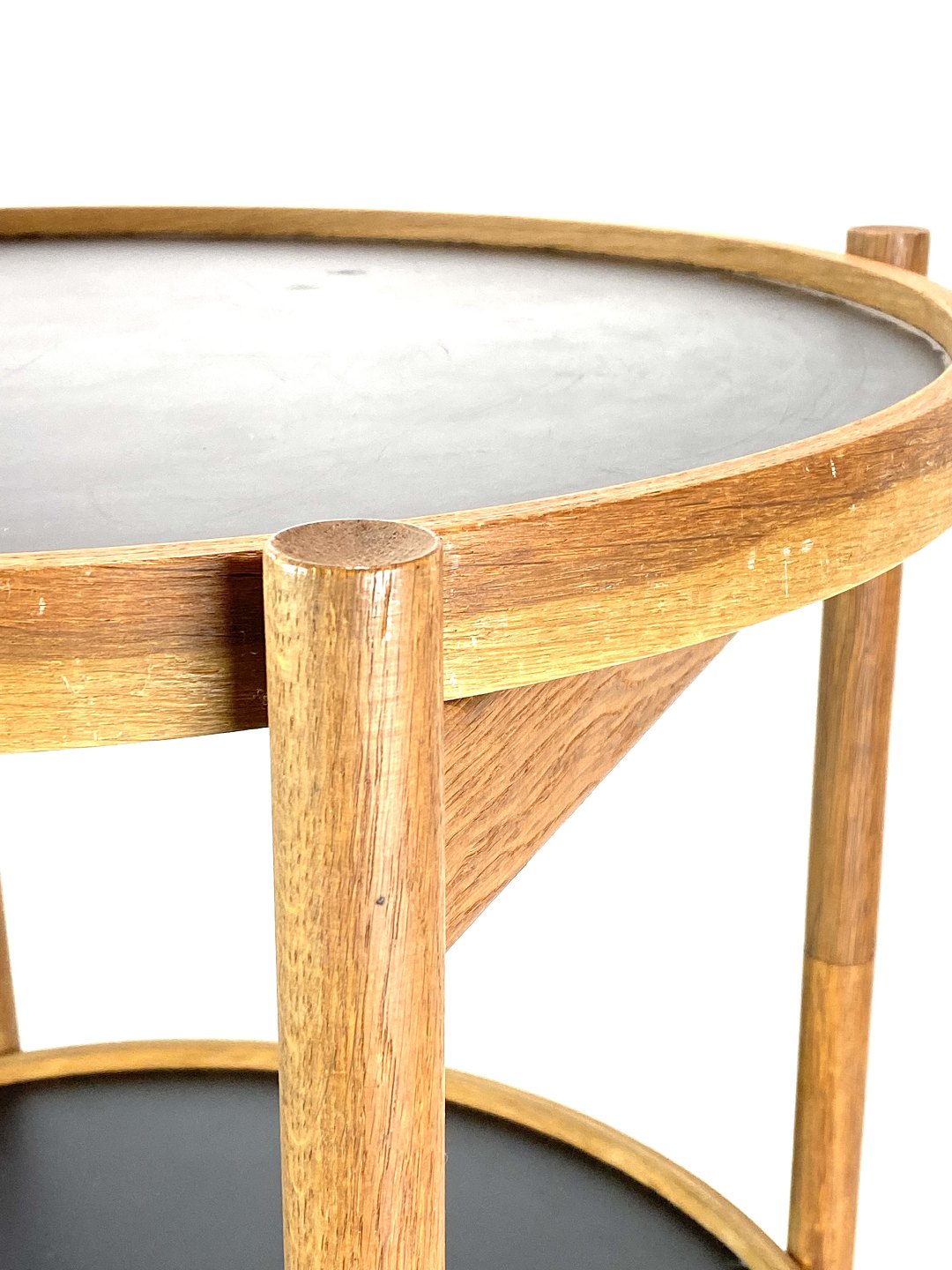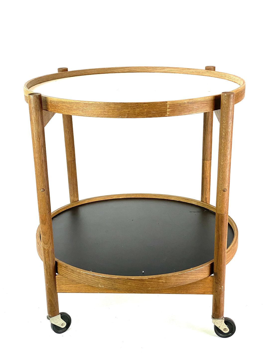 Bølling bakkebord af eg med sort og hvid top af Brd. Krüger fra 1970erne. Bordet er i flot brugt stand.