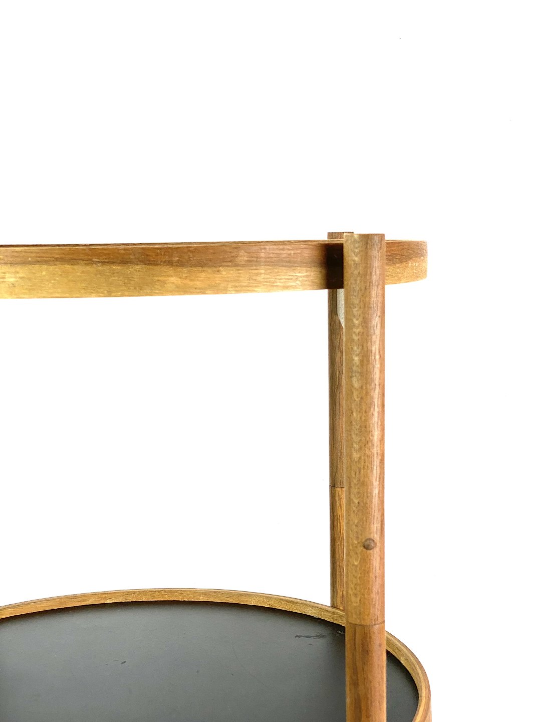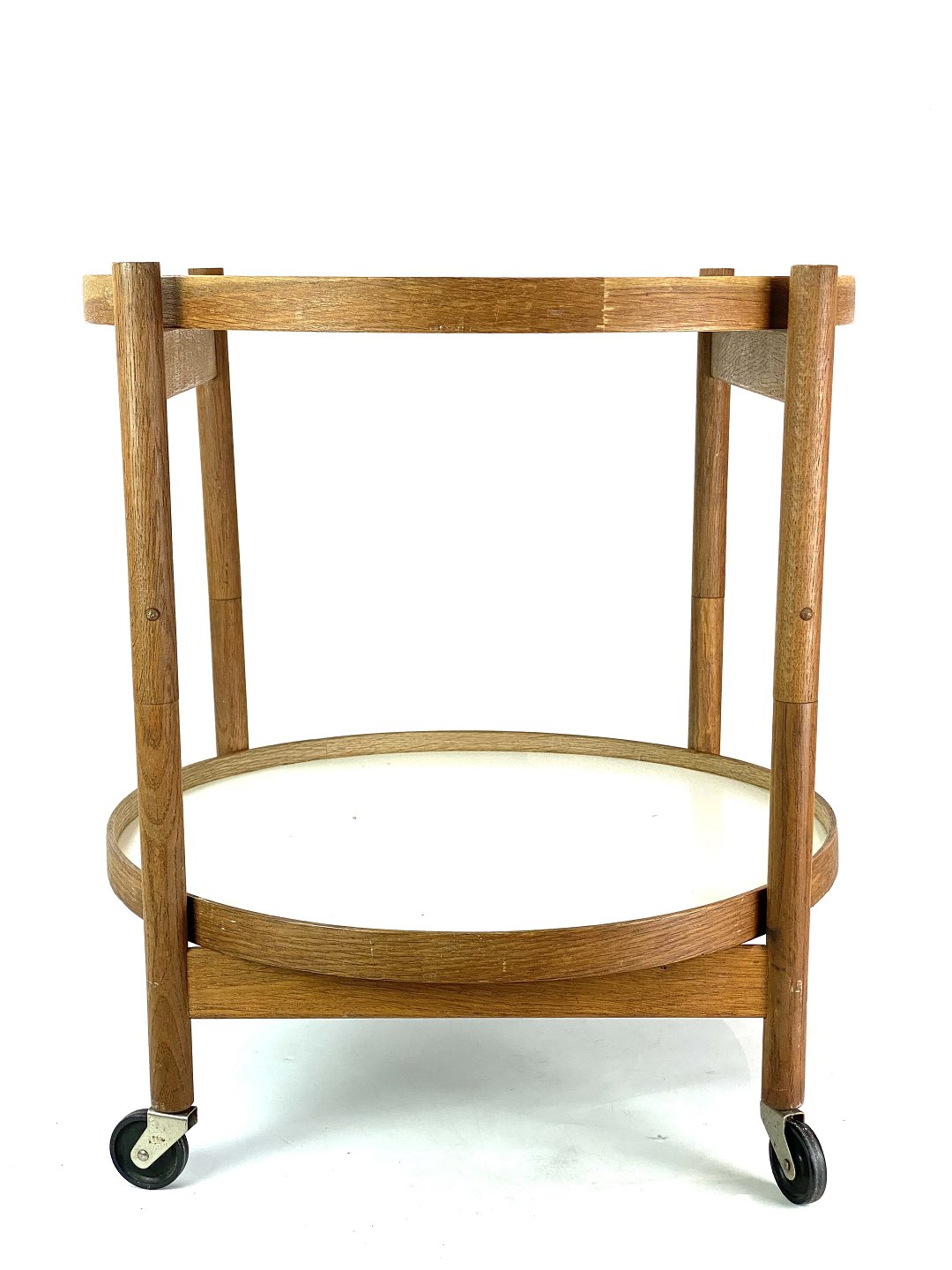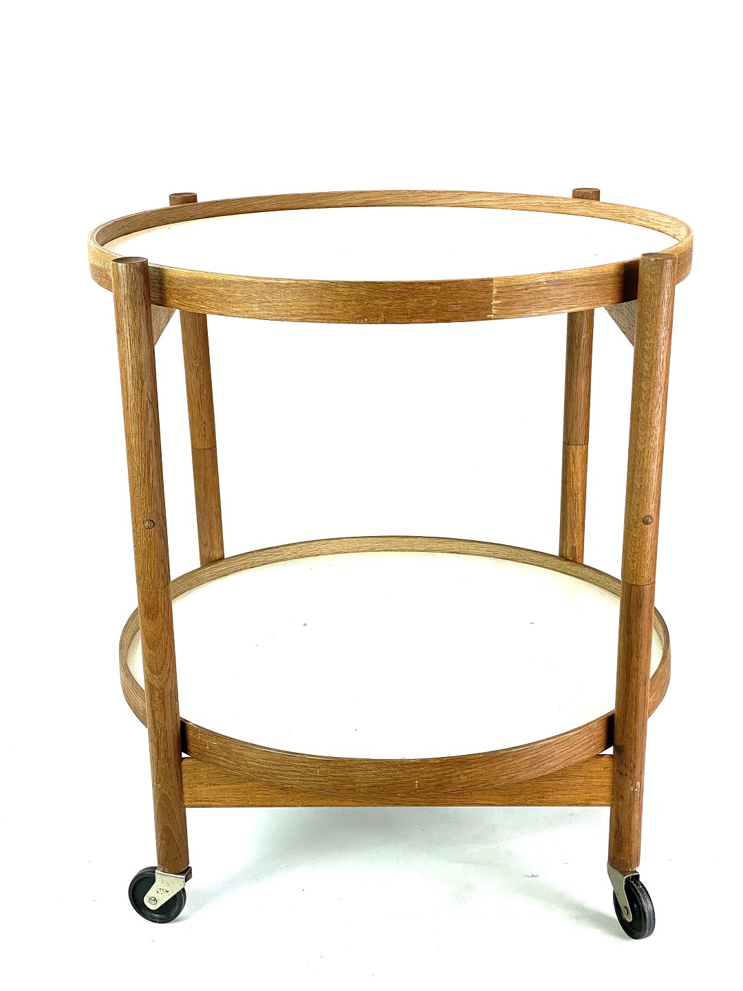 Bølling bakkebord af eg med sort og hvid top af Brd. Krüger fra 1970erne. Bordet er i flot brugt stand.