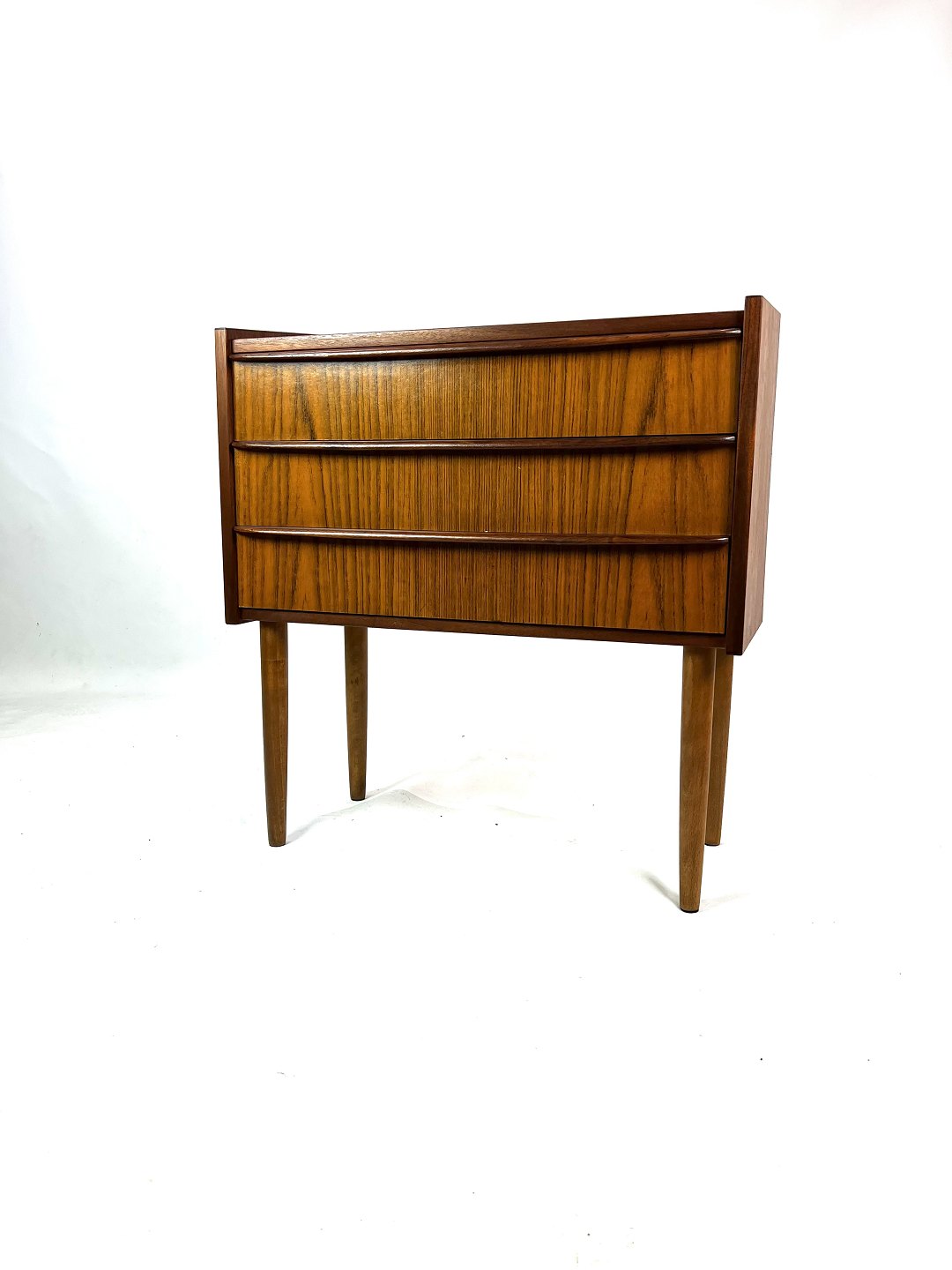 Lille Kommode I Palisander med 3 skuffer fra 1960'erne. Meget brugbart møbel, som passer godt som sengebord, entrémøbel, samt til generelt opbevaring.
