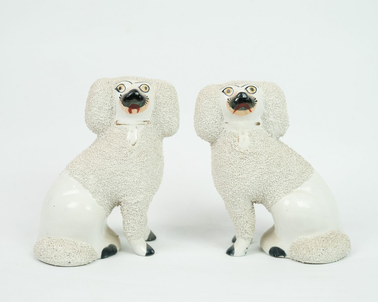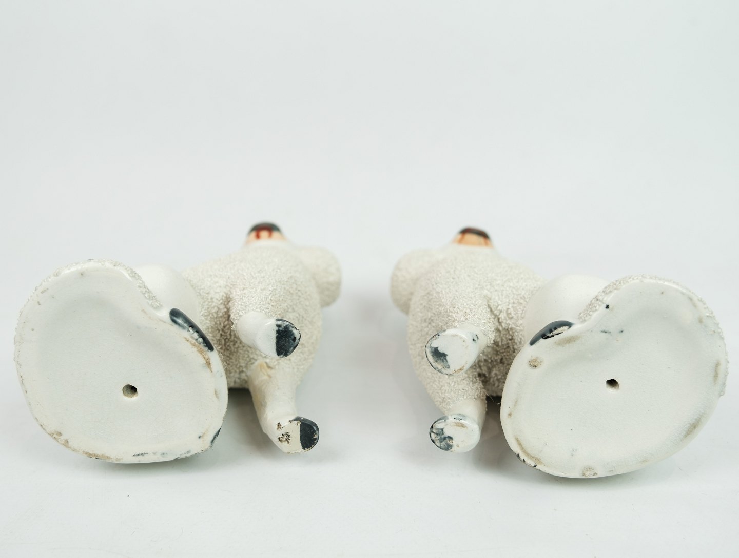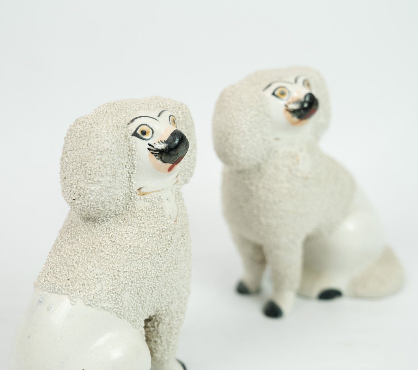 Shaffordshire hunde, bedre kendt, som fanøhunde i fajance fra omkring 1920'erne. Brugt til at stille hundene i vinduerne i søfartsmiljøer. Når manden var ude skuede de udad, og omvendt, når han var hjemme. Begge står i meget fin brugt stand.
