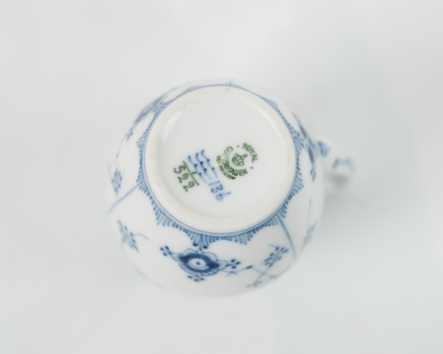 SolgtRoyal Copenhagen musselmalet flødekande No. 1/522. Kanden står i meget fin brugt stand.