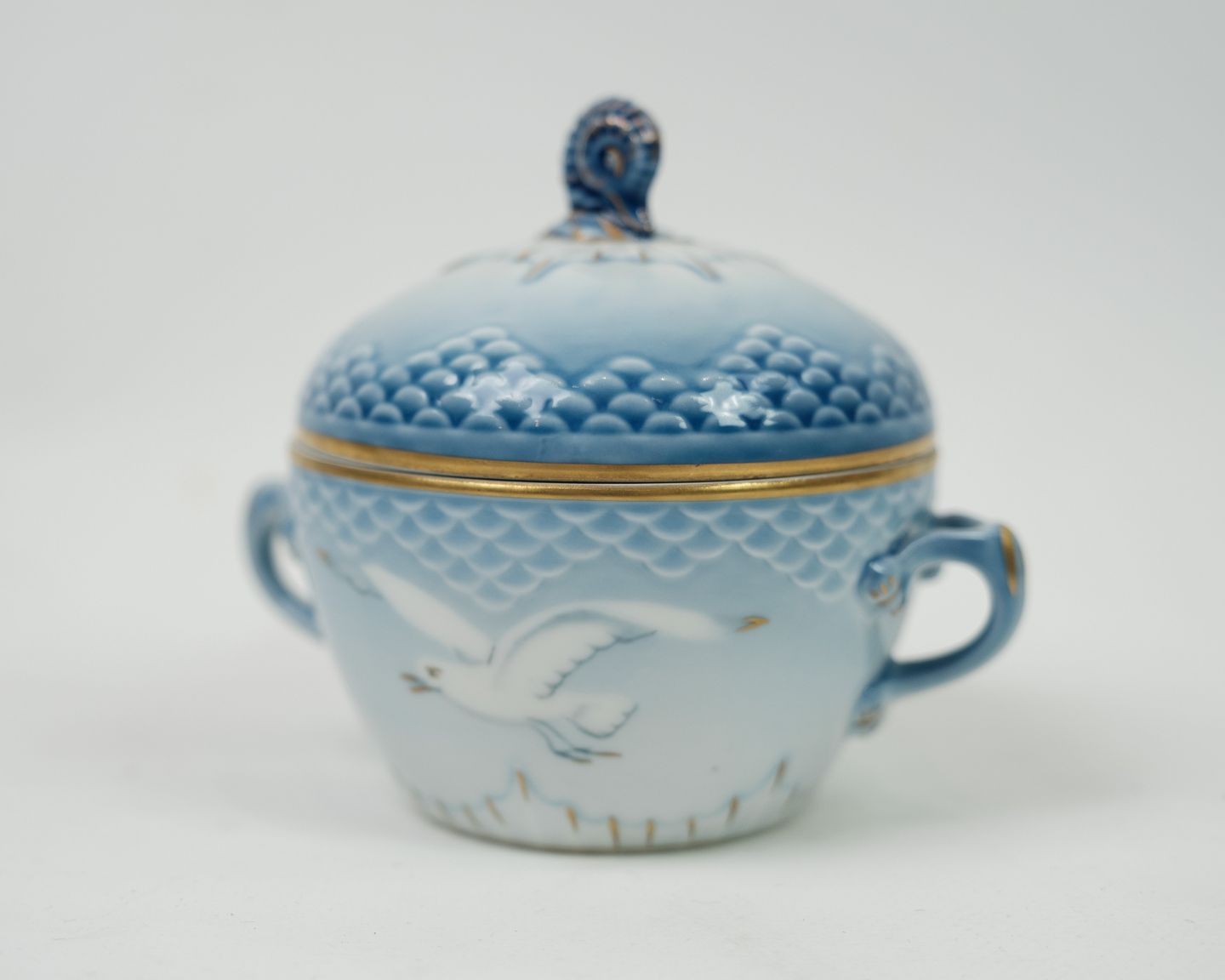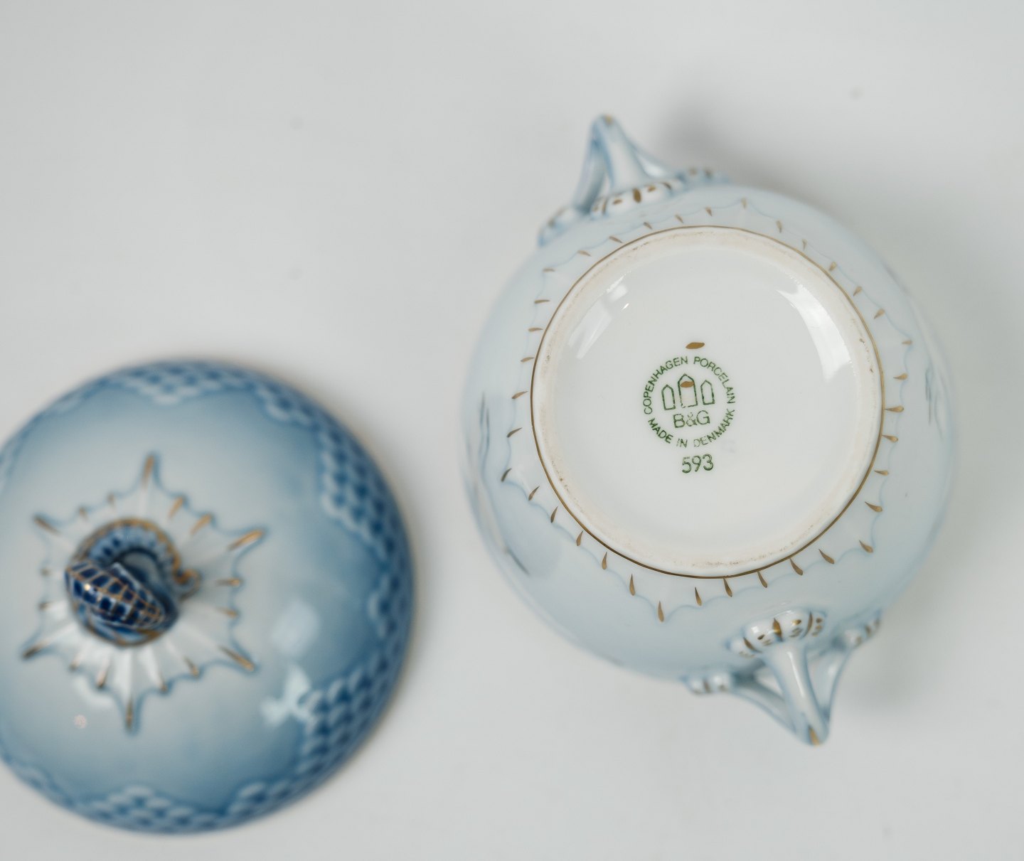 Sukkerskål fra Bing & Grøndahl i mågestel med en fin guldkant.