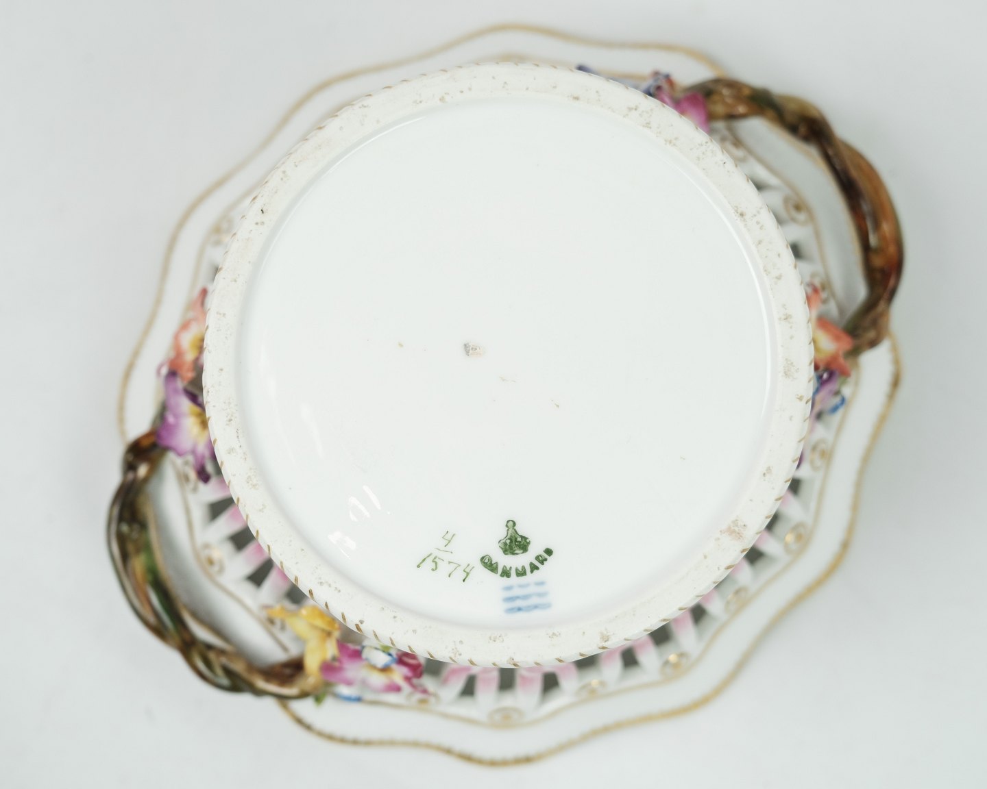 Royal Copenhagen kongelig skål i gennembrudt med flotte påsatte blomster i mønstret saksisk blomst nr. 1574.