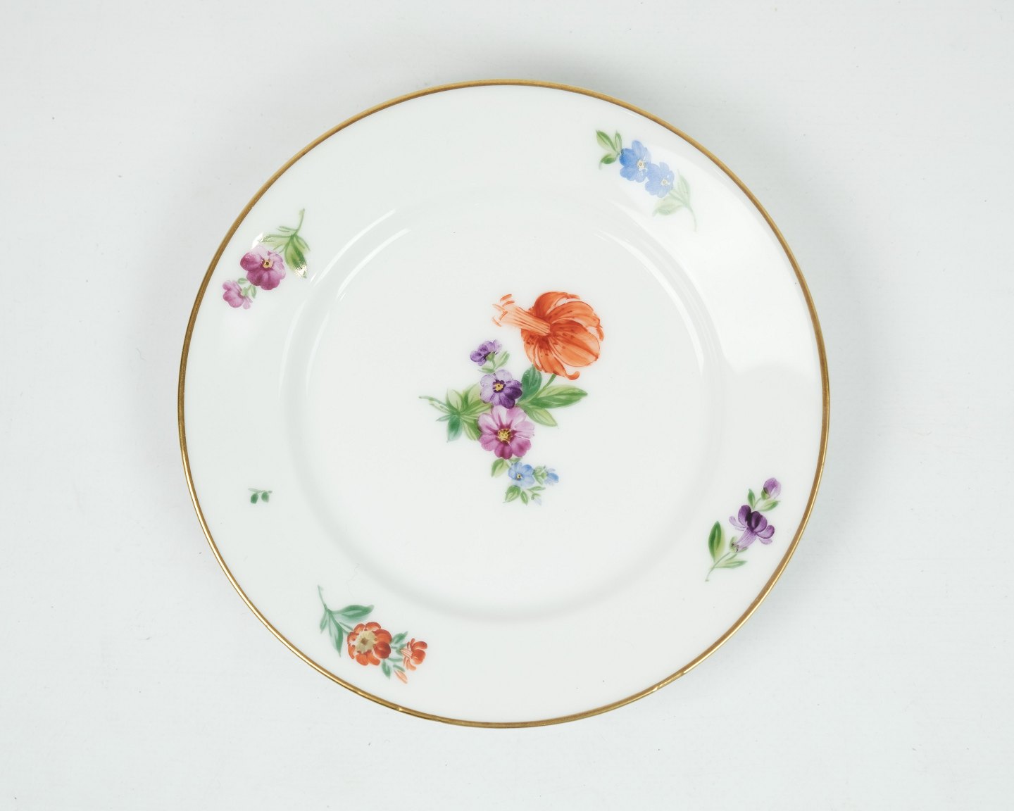 Royal Copenhagen kongelig kage / side tallerken dekoreret med håndmalet blomster nr. 9055. Fremstår hel og uden skader.
