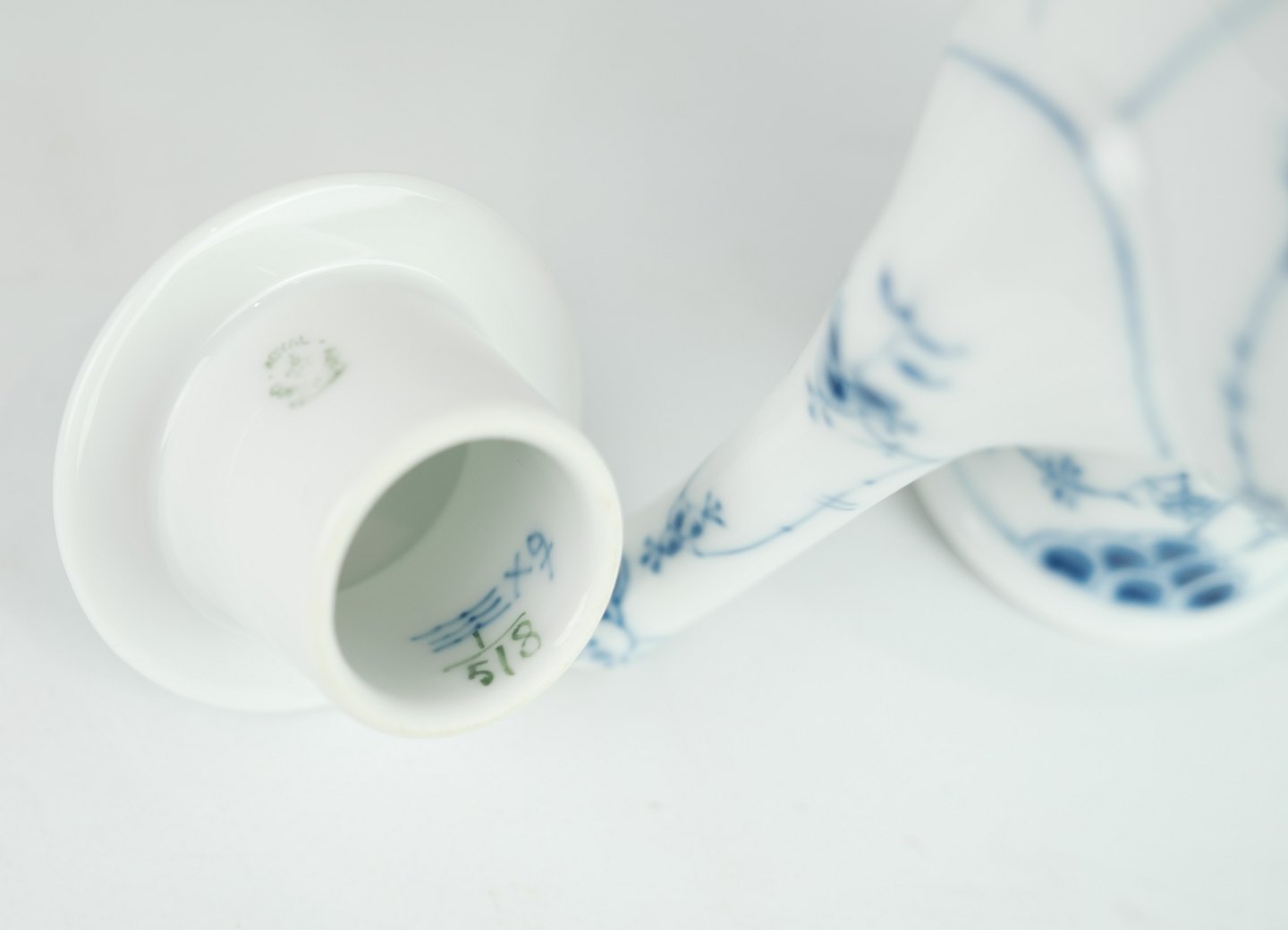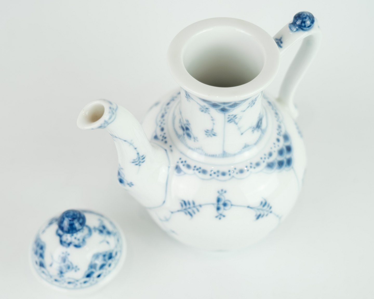 Royal Copenhagen kongelig musselmalet halvblonde kaffekande nr. 1/518. Står i meget fin brugt stand