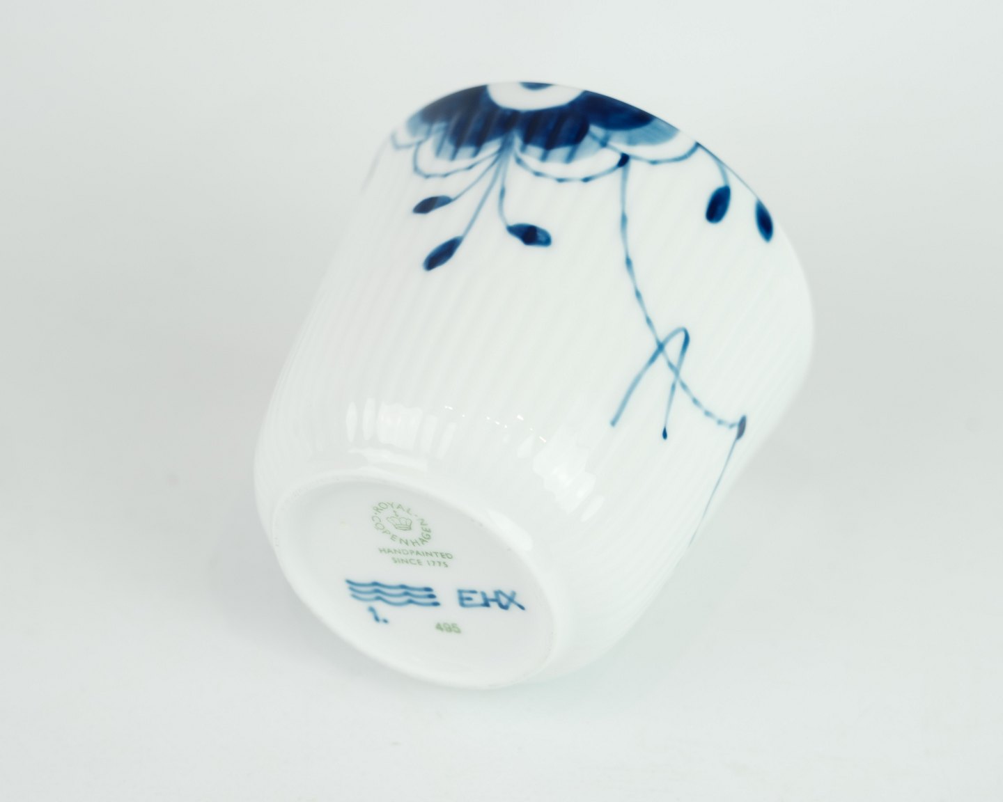 SolgtTermokop blå mega riflet, designet af Karen Kjældgård-Larsen for Royal Copenhagen fra år 2000. Koppen er håndmalet med det flotte blå kongelige farve.