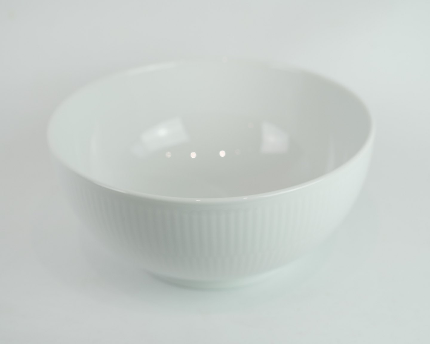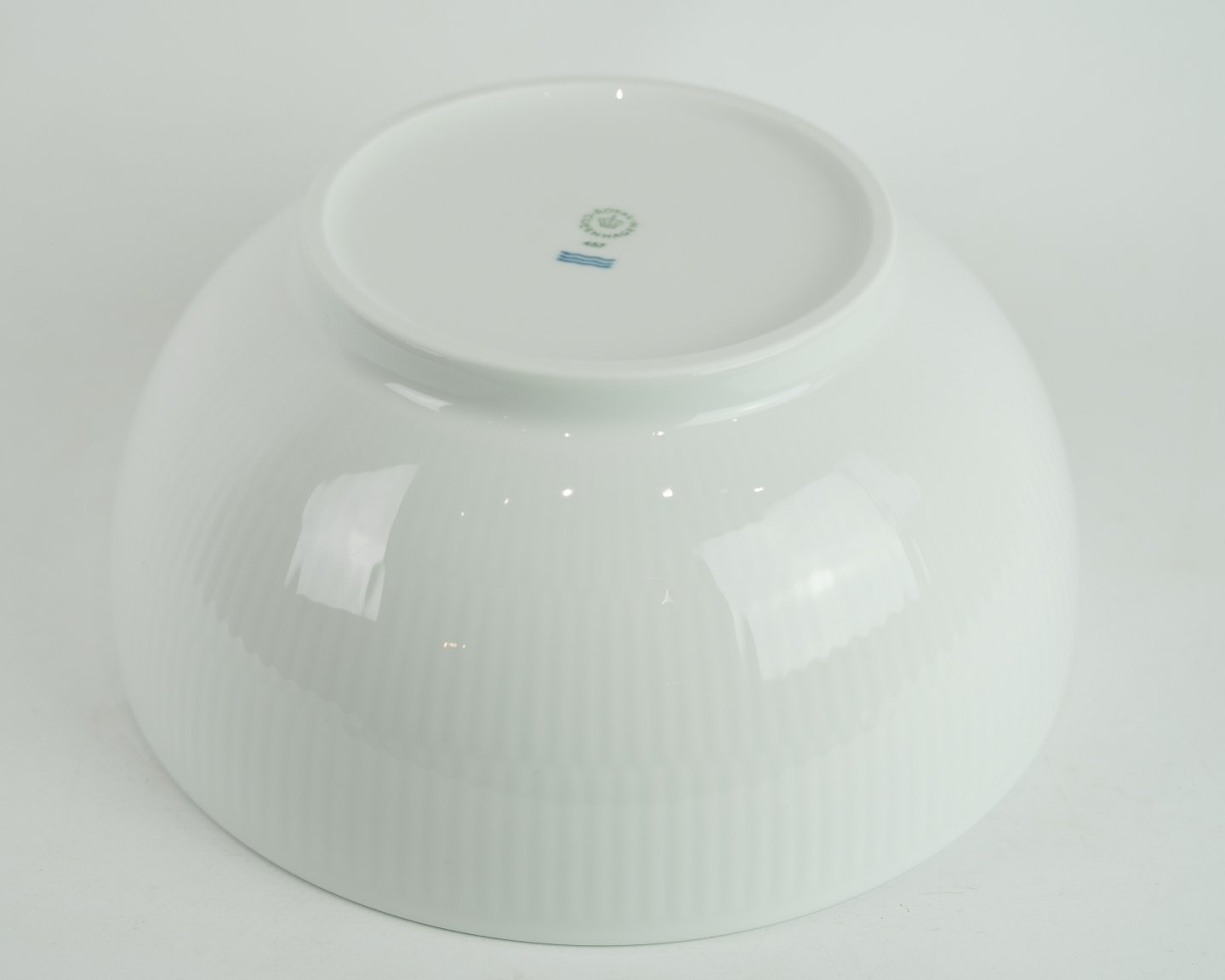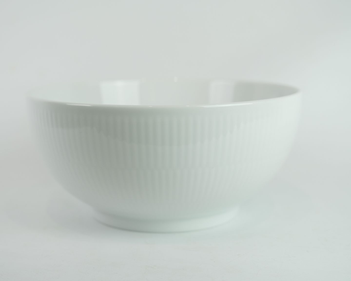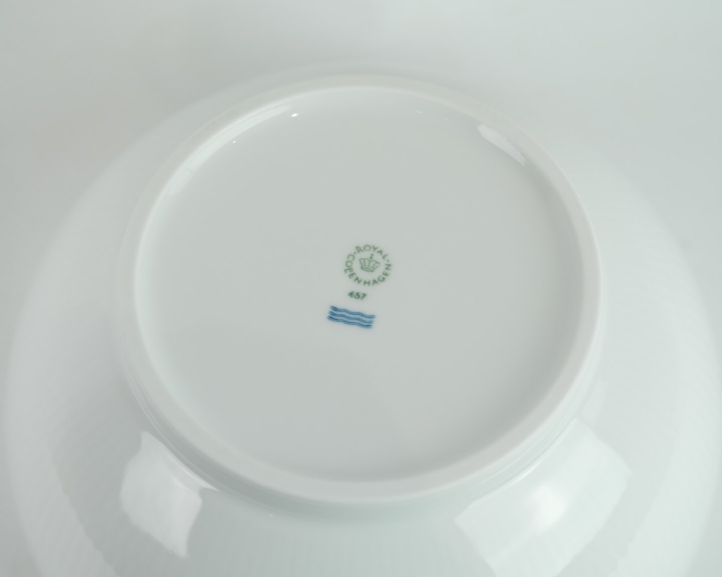 SolgtRoyal Copenhagen hvid riflet skål, designet af Arnold krog. Denne serveringsskål er Ø21 og står i meget fin brugt stand.