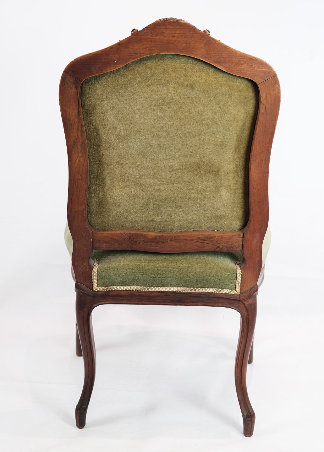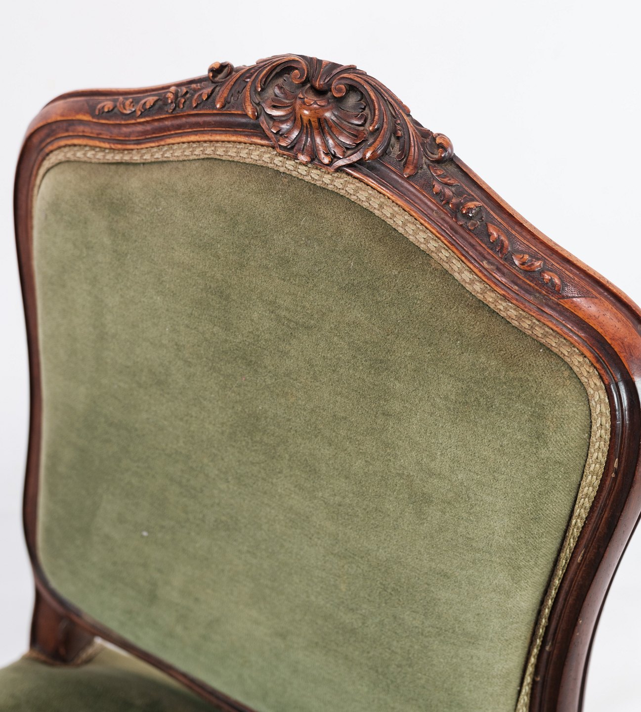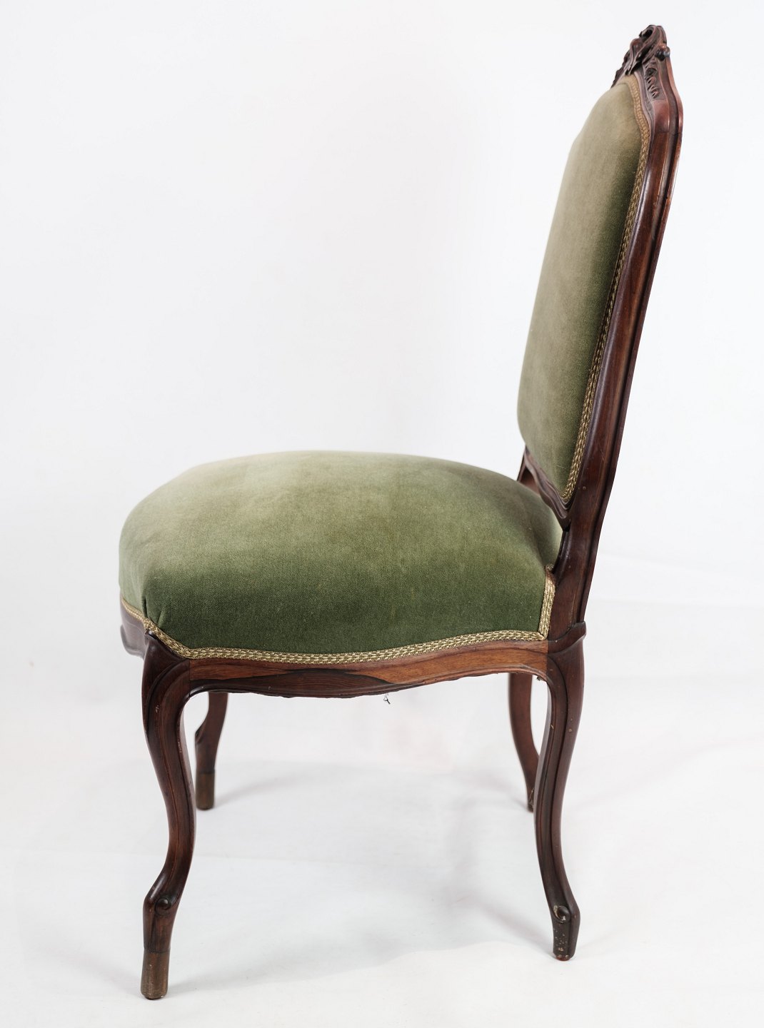 SolgtEt par salon stole ny rococo stole med grønt velour stof i mahogni fra omkring år 1860'erne. Begge står i fin brugt stand.