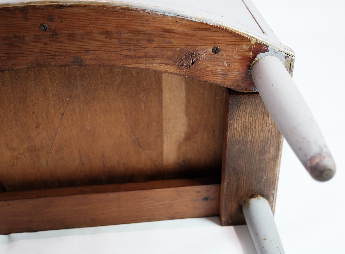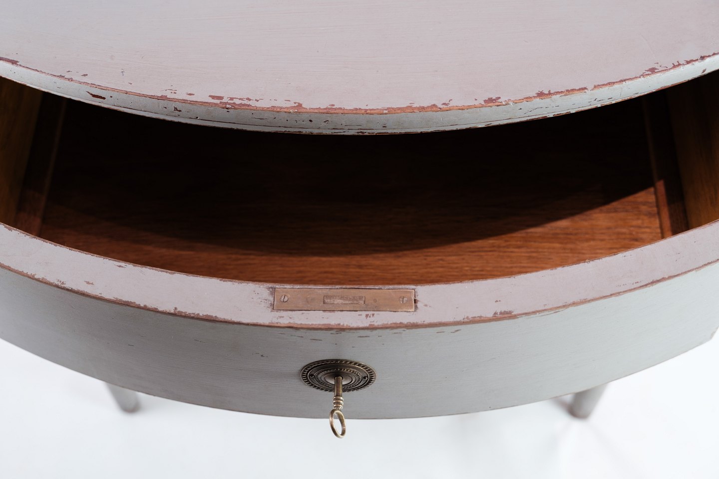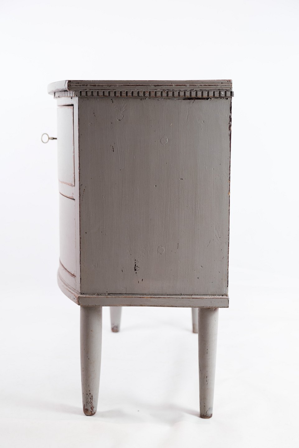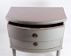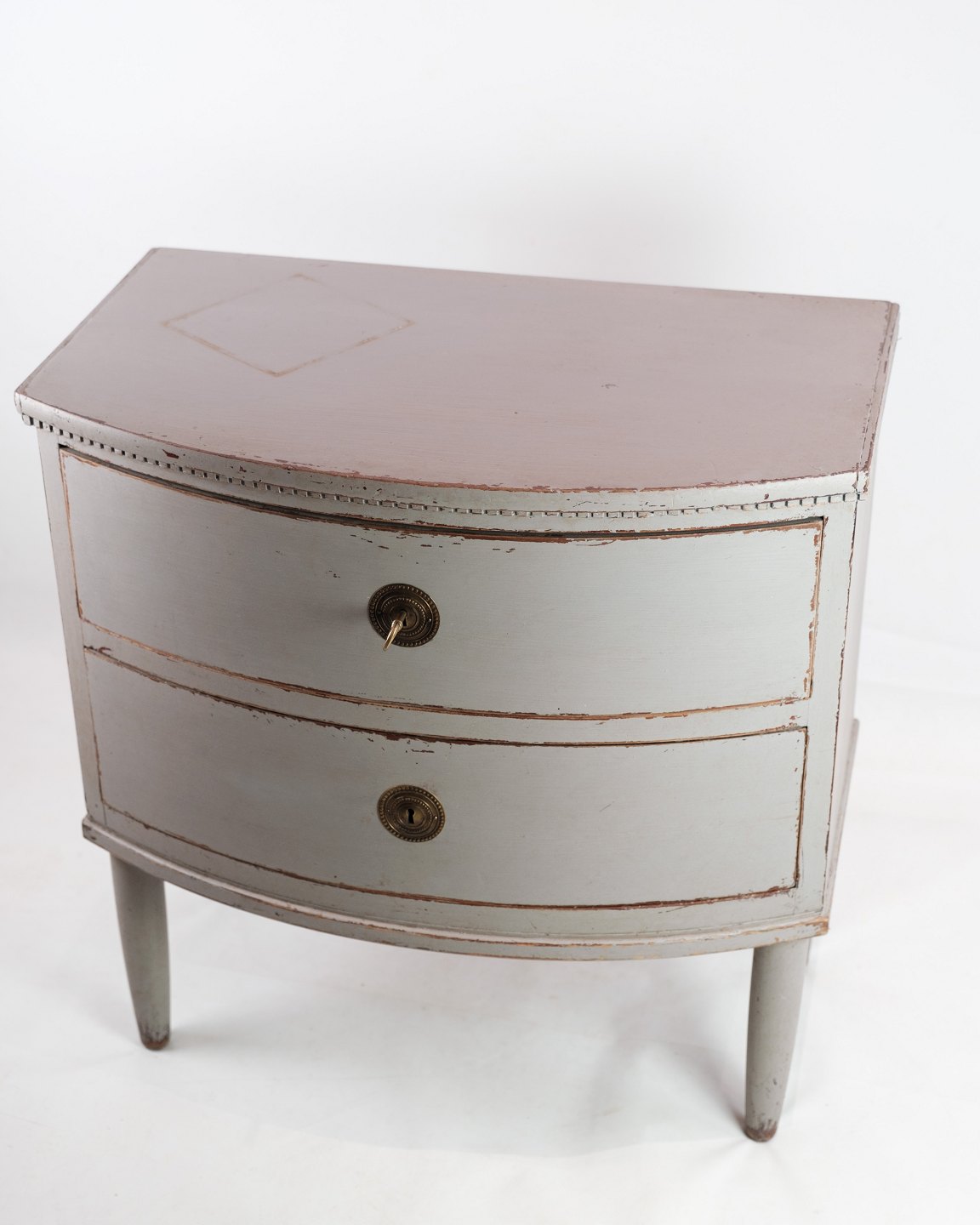 SolgtGustaviansk kommede med to skuffer i gråmalet fra år 1890'erne. Kommoden kaldes en Københavner kommode, da den har en buede front. Den står i meget vintage god stand.