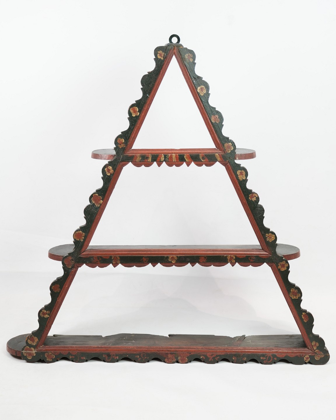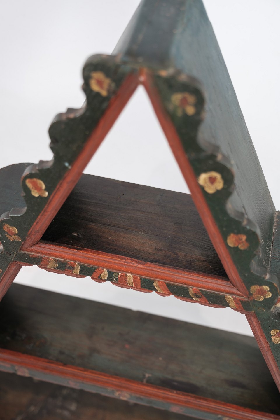 SolgtEn gammel amagerhylde med original bemaling og farver fra omkring år 1860'erne. Står i flot brugt stand