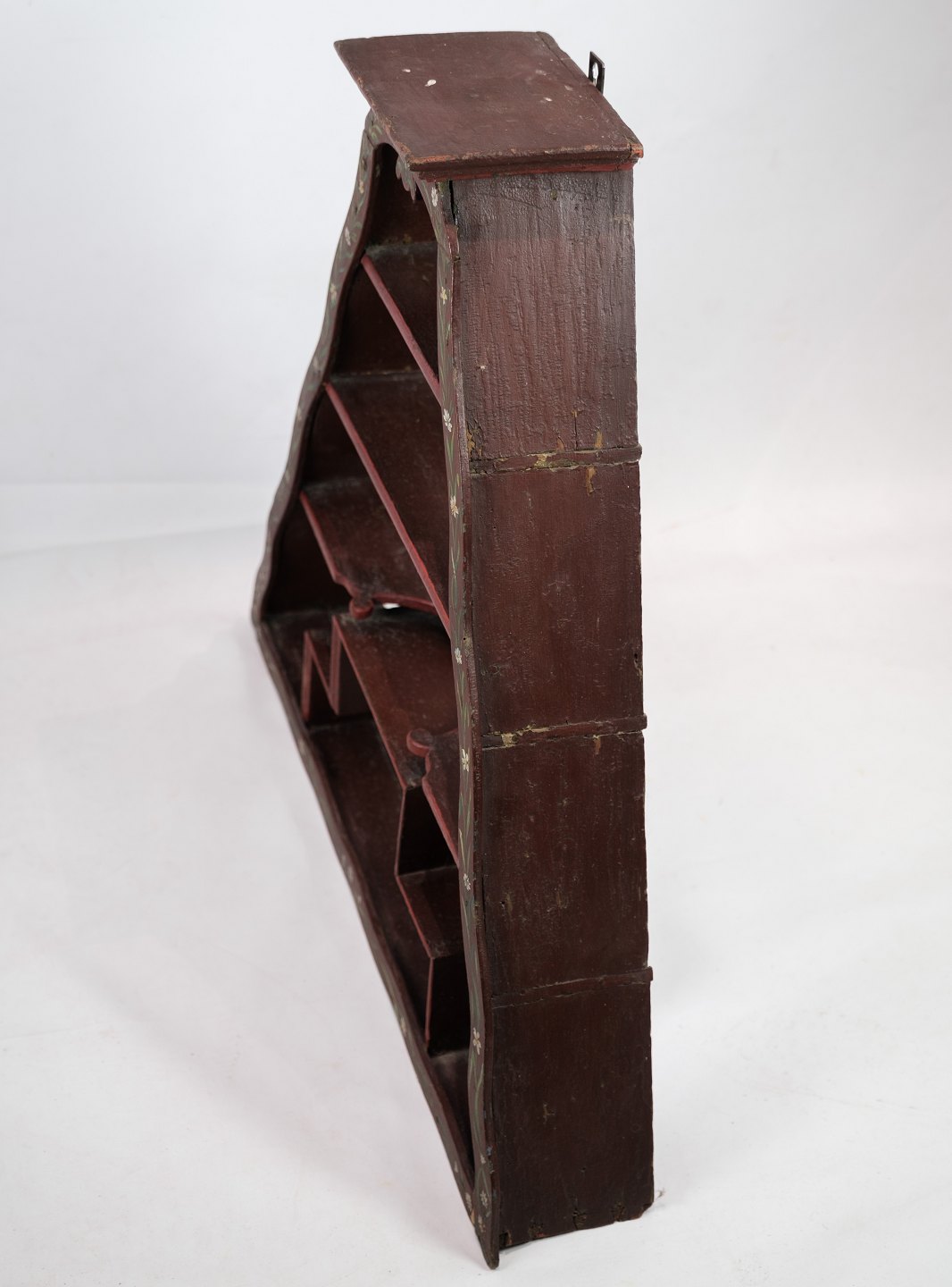 En gammel amagerhylde med original bemaling og farver fra omkring år 1860'erne. Står i meget fin brugt stand.