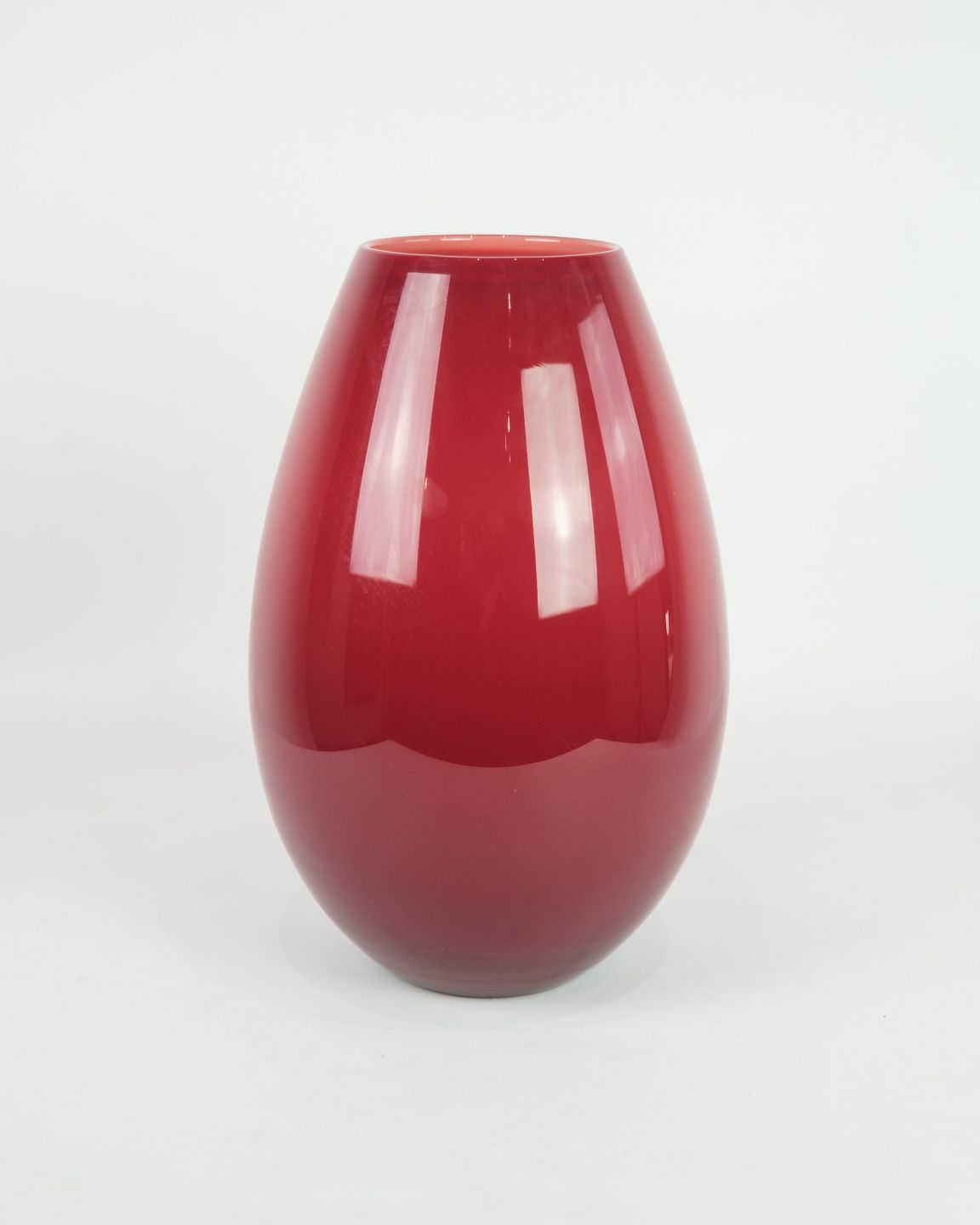 SolgtStor vase, model Cocoon, designet af Holmegaard mundblæste i mørkerød farve.