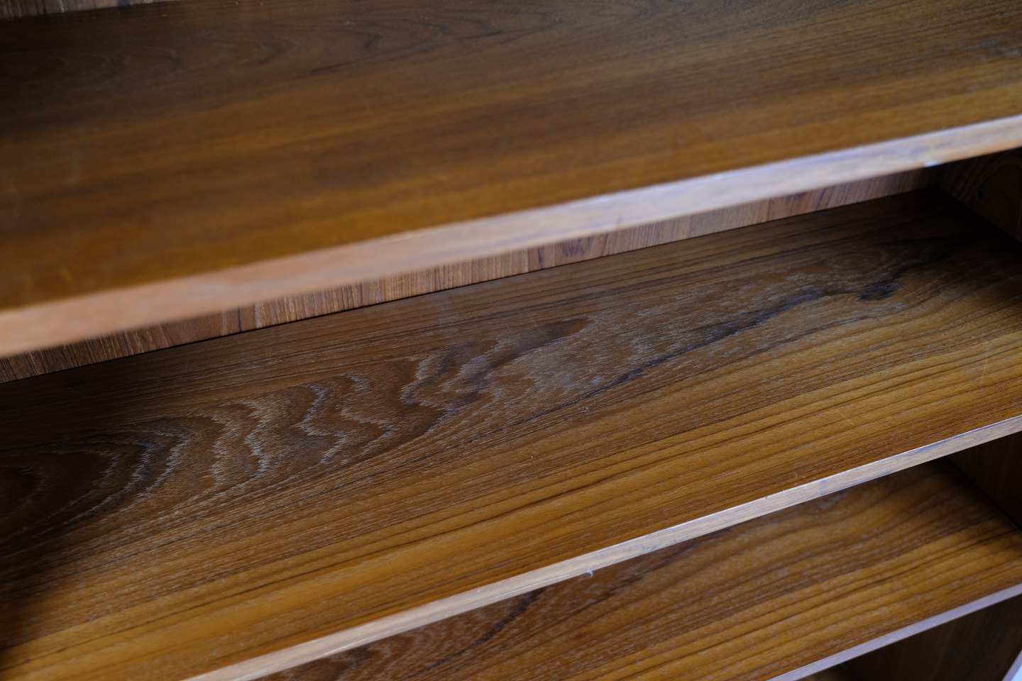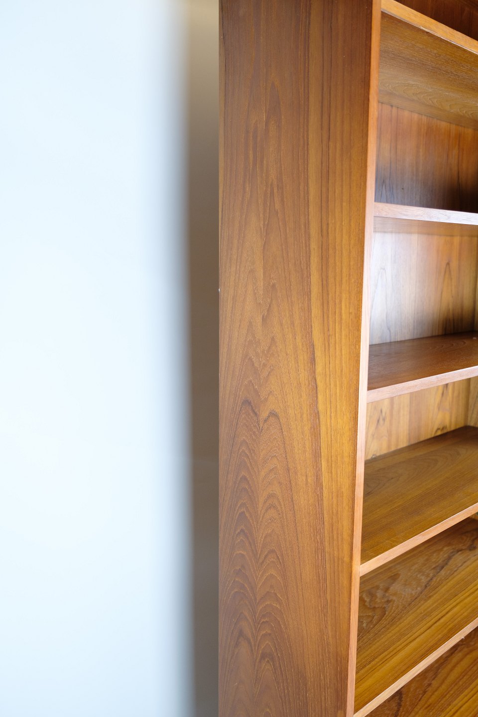 Bogreol med flytbar hylder i teaktræ af dansk design fra omkring 1960'erne.
