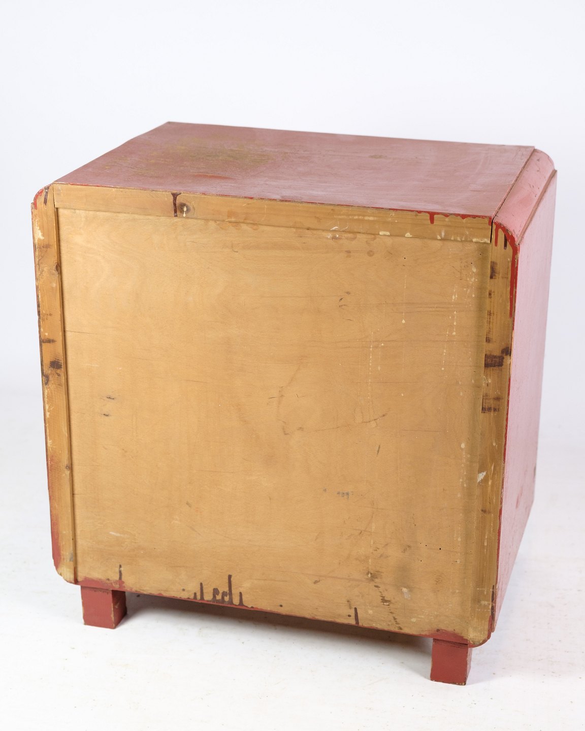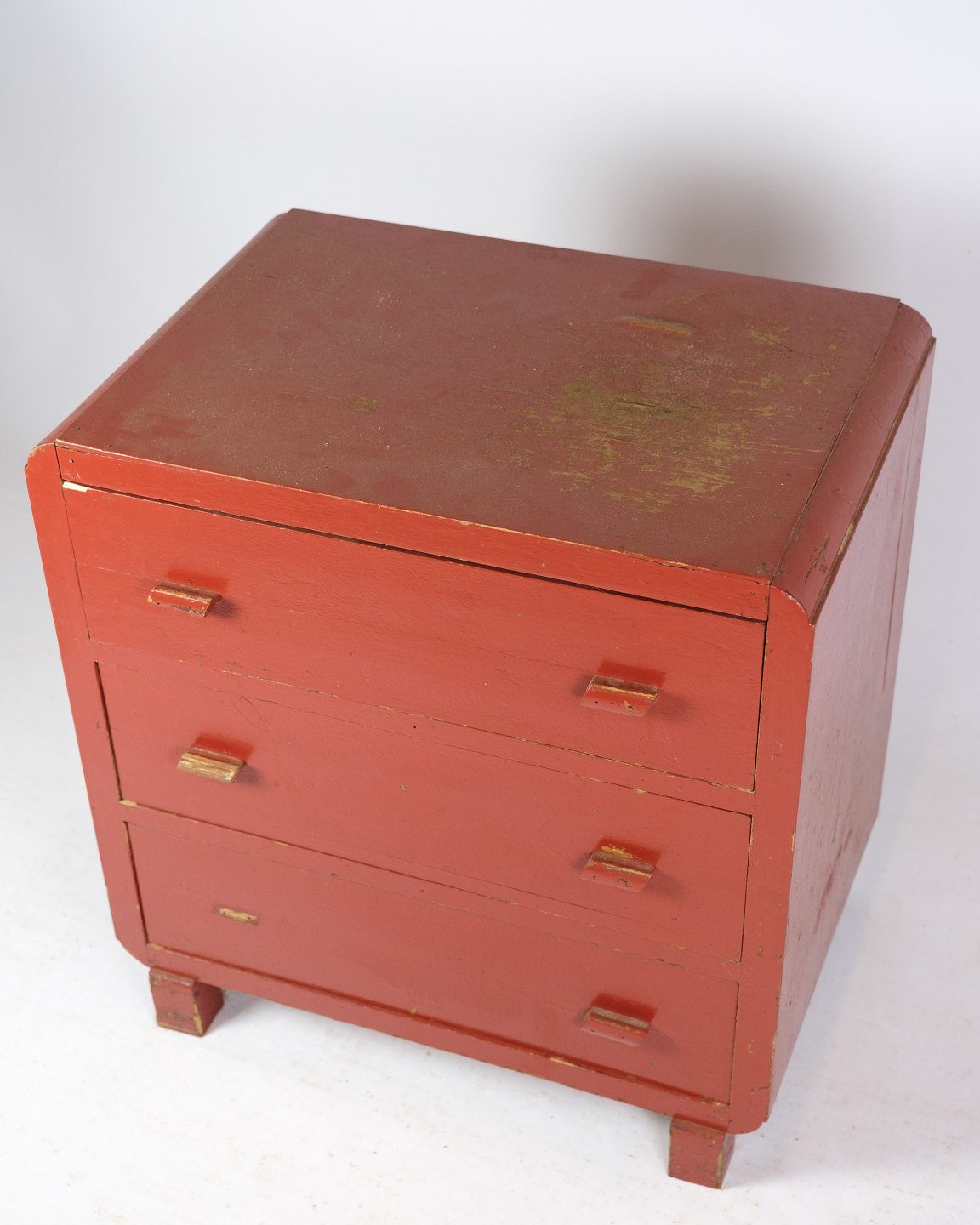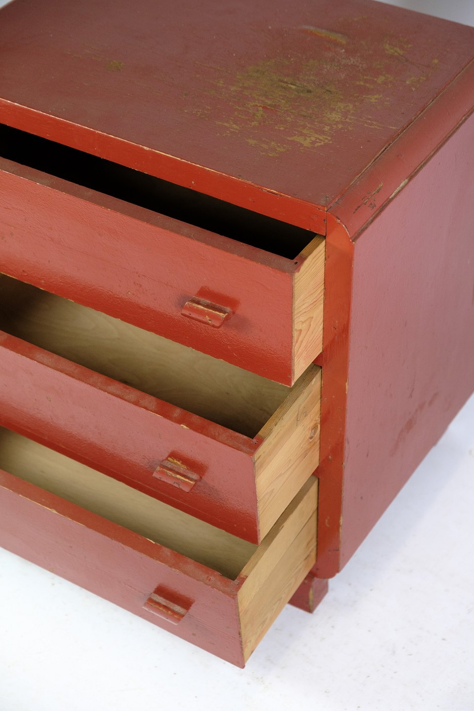 Lille kommode med rød bemaling fra omkring år 1940'erne.