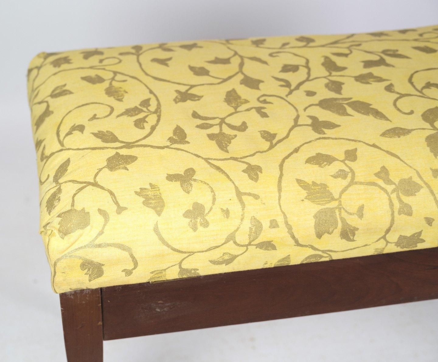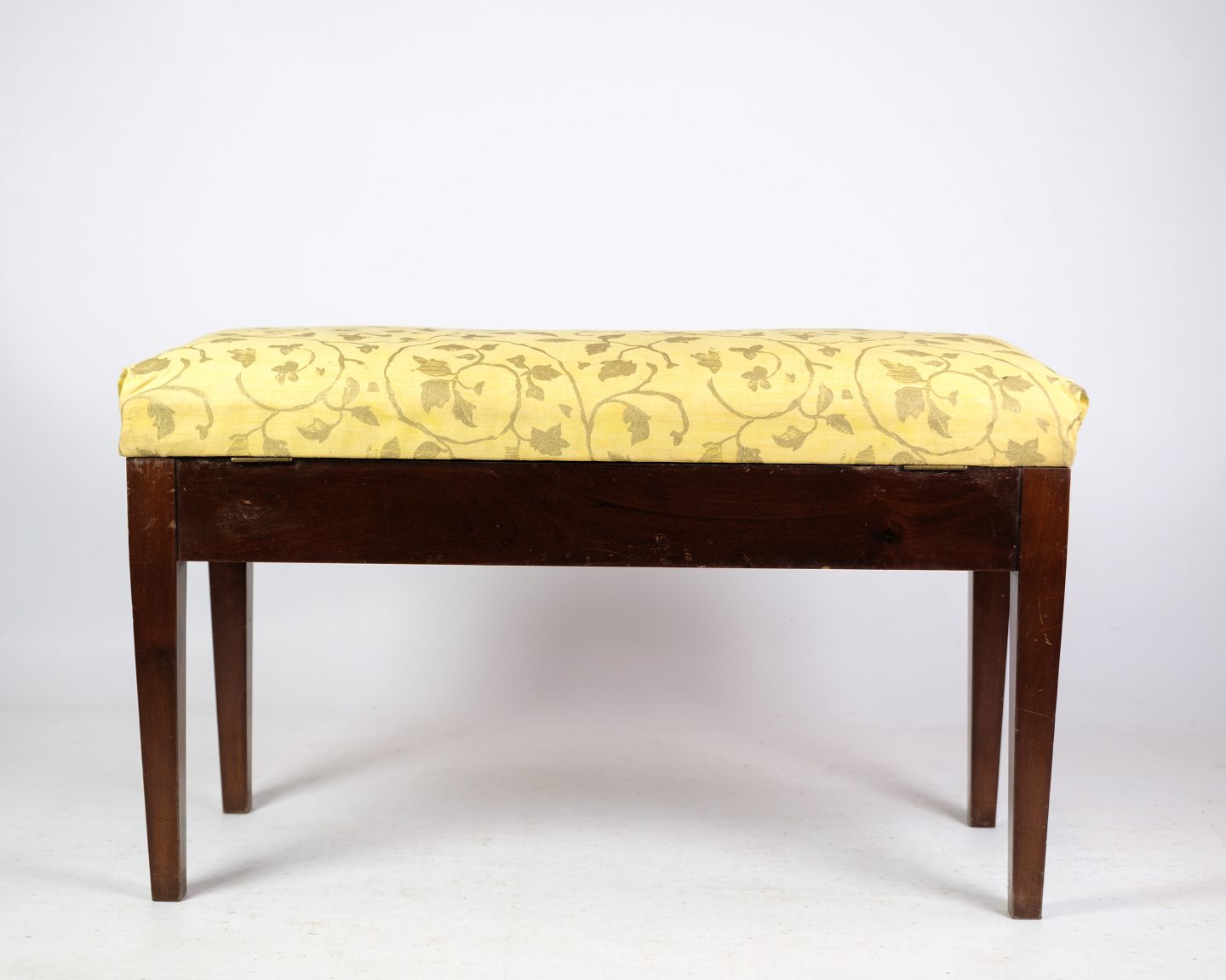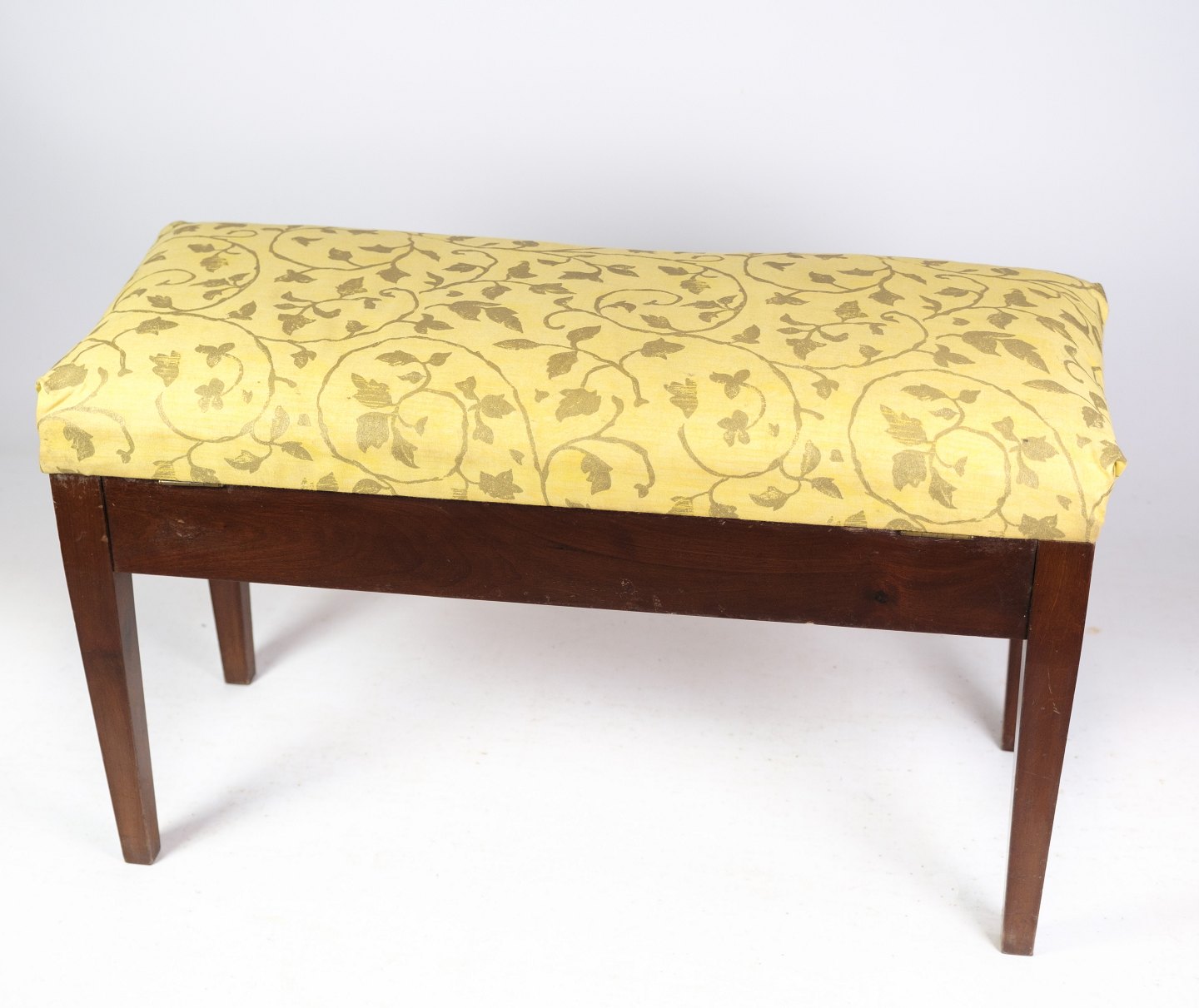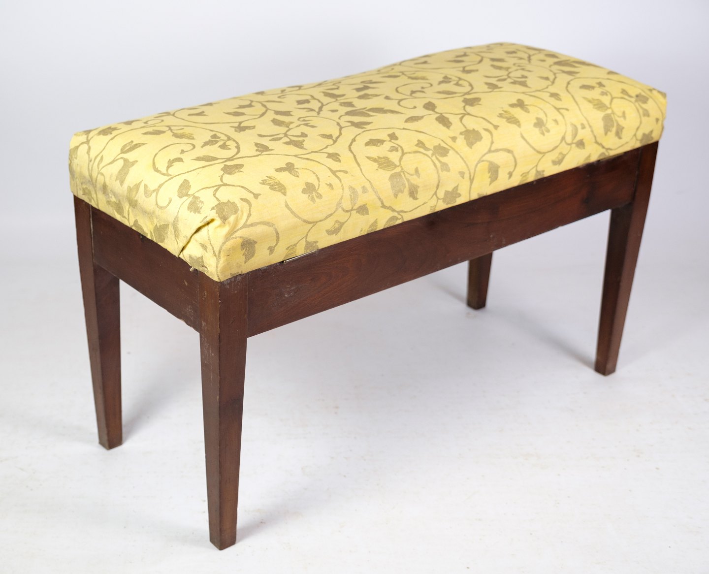 Klaver bænk / skammel i mahogni med lyst blomstret stof fra omkring år 1910.