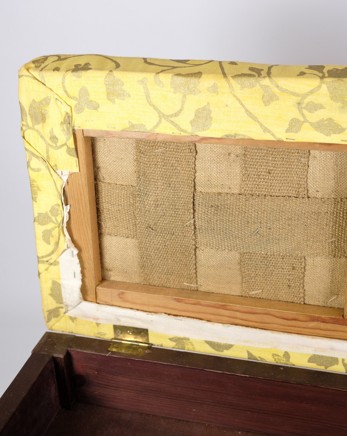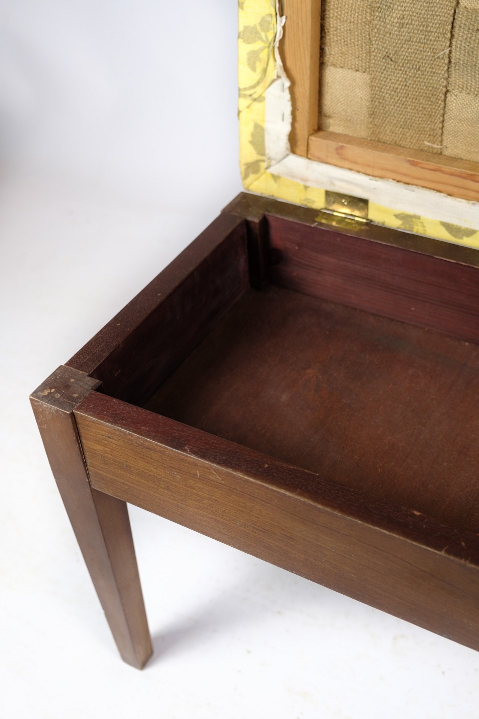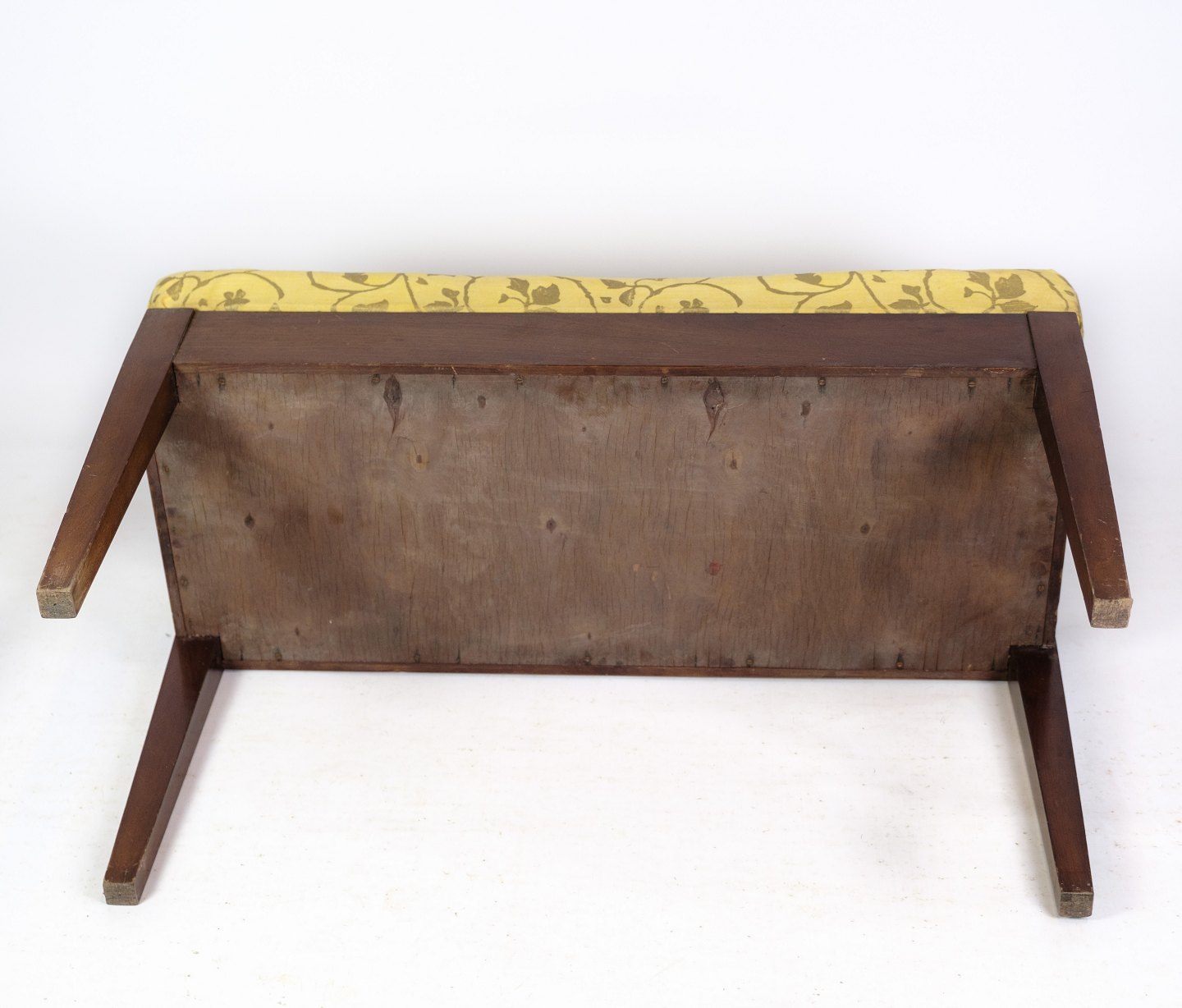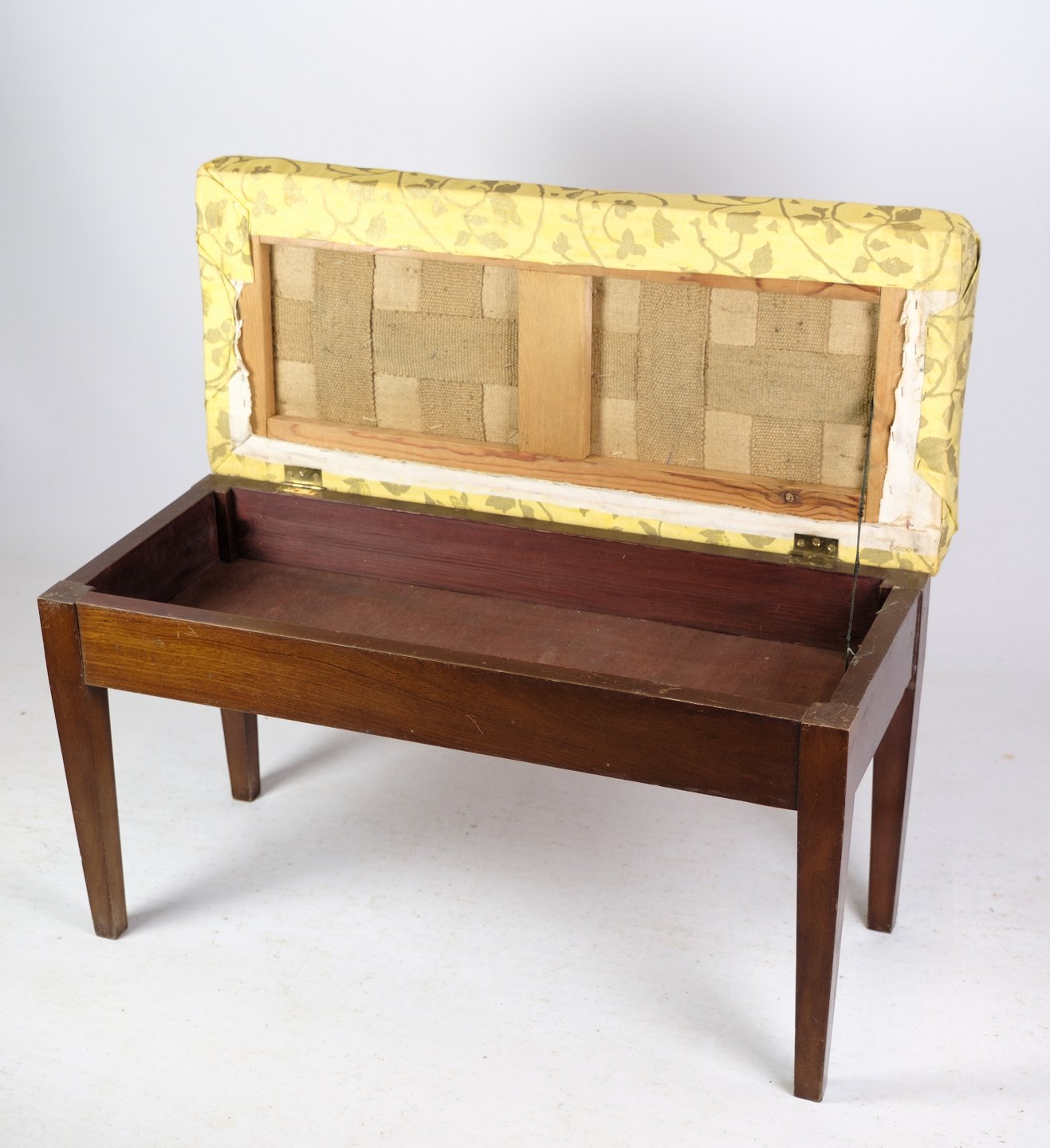 Klaver bænk / skammel i mahogni med lyst blomstret stof fra omkring år 1910.