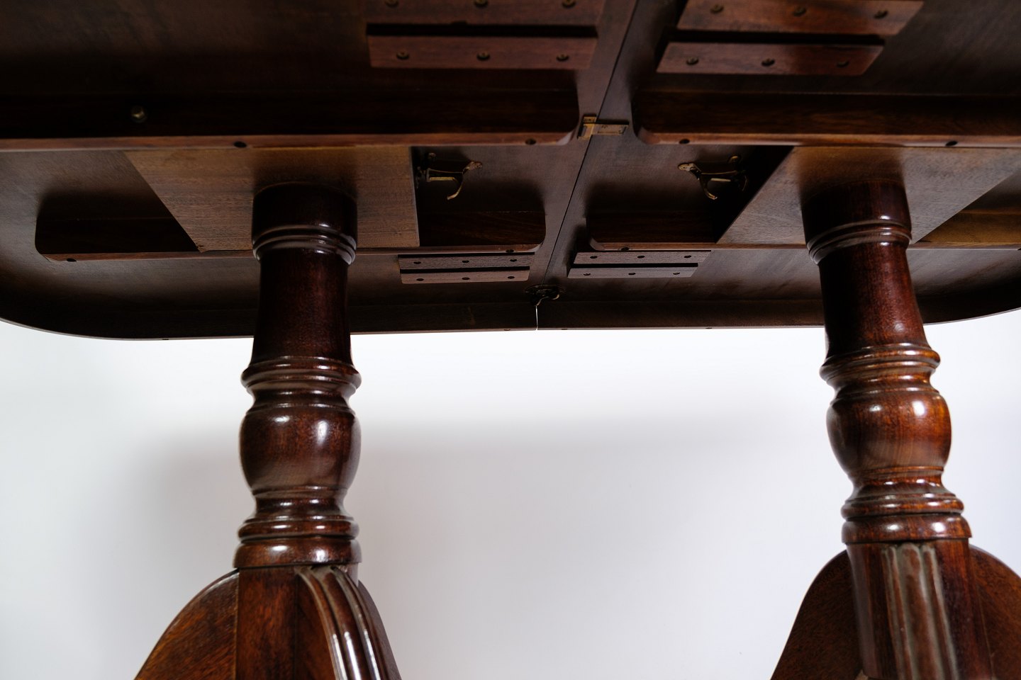 Spisestuebord i mahogni designet i Queen Anne stilen fra omkring 1930'erne. Et meget flot bord som vil være smukt i de flere klassisk indrettet hjem.