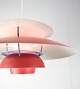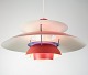 SolgtLoftlampe, model PH5, designet af Poul Henningsen i 1958. Lampen er i farverne rød og blå. Den anvendte lyskilde er 75W E27. Materialet er Aluminium. Den står i flot brugt stand.
