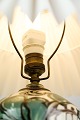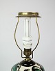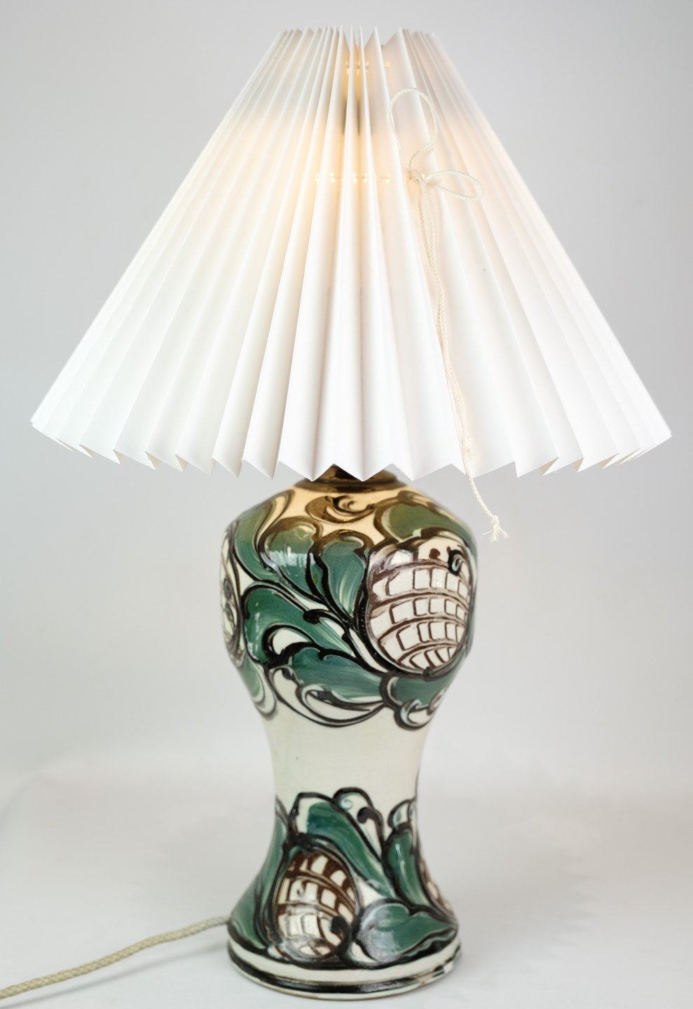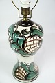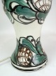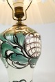 SolgtKeramik bordlampe af Danico med grønne og lyse farver med Pink Rose lampeskærm fra omkring 1940'erne.