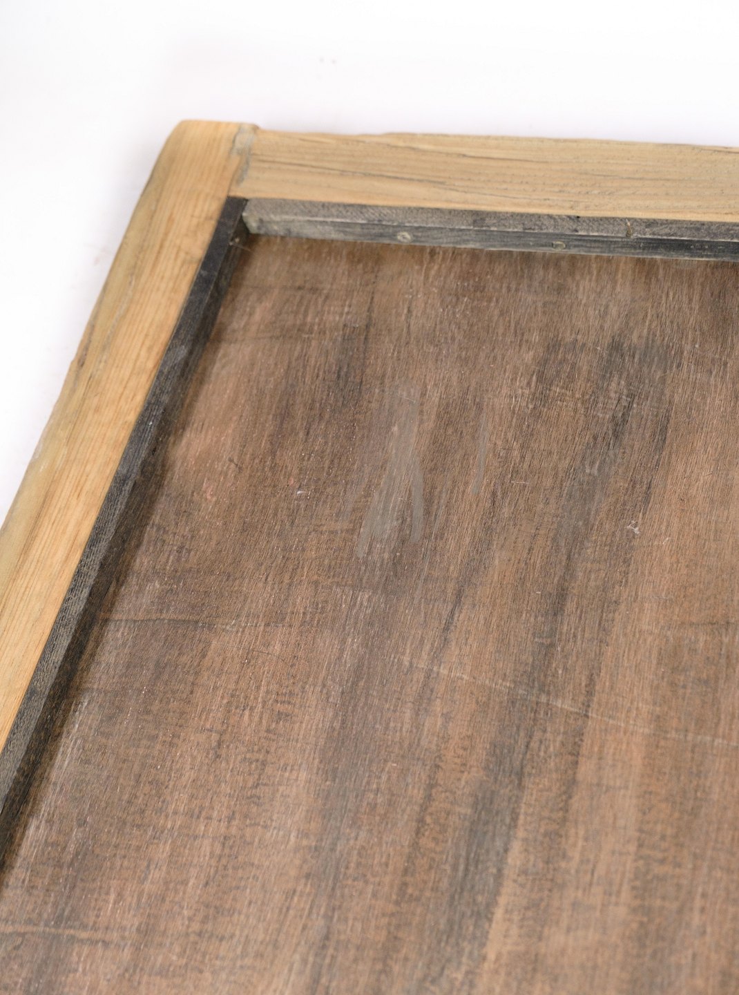 Spejl af en lys træsort, oprindeligt fra Kina i perioden 1880'erne. Spejlet står med en utrolig smuk rustik ramme.