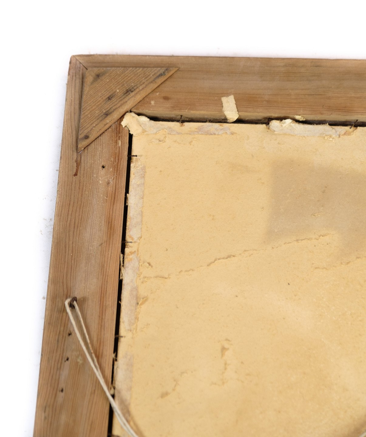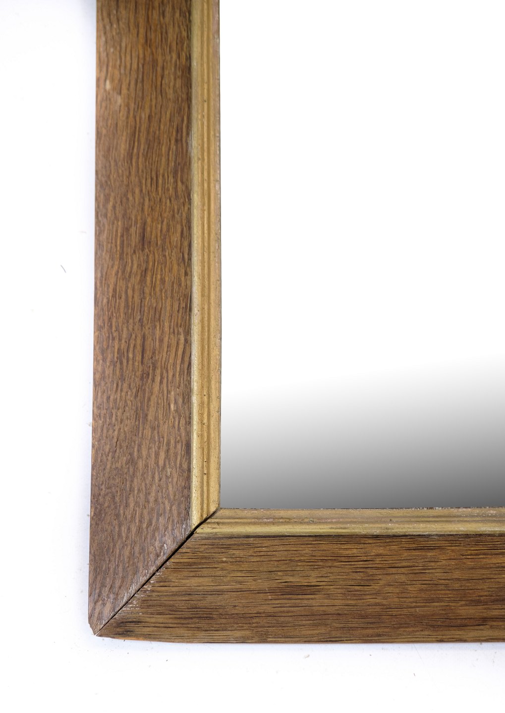 Antikt spejl i træsorten egetræ med forgyldninger fra omkring år 1920'erne.