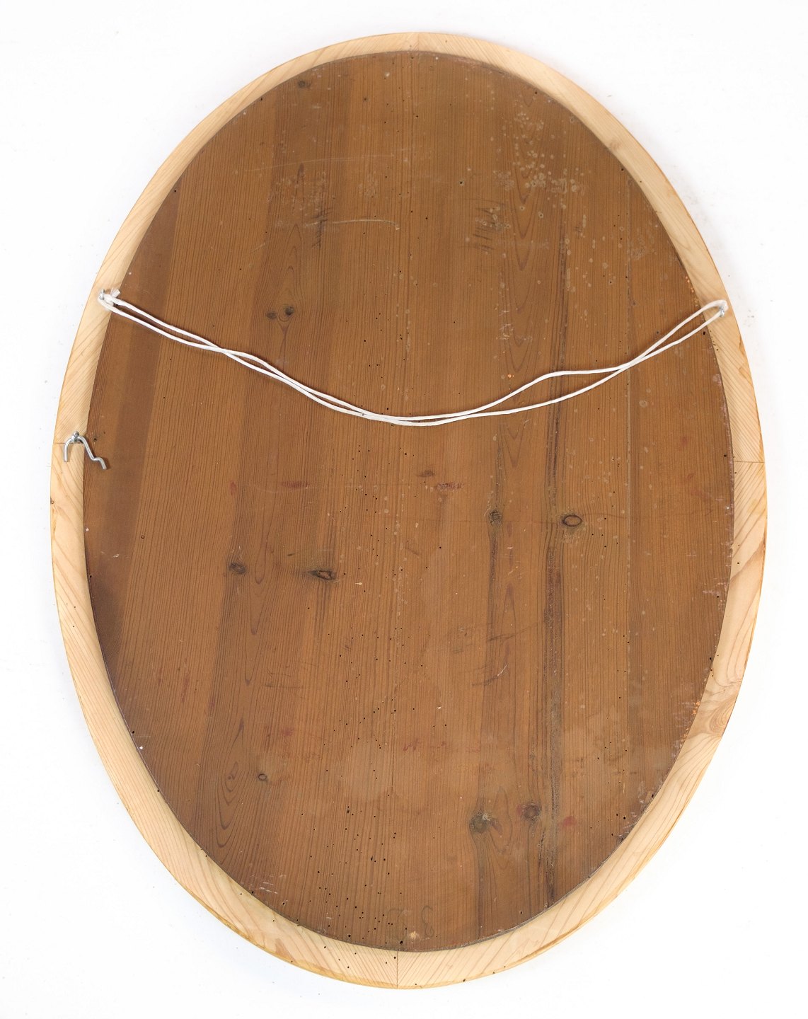 SolgtOvalt spejl i træsorten lyst fyrretræ fra omkring år 1920'erne
