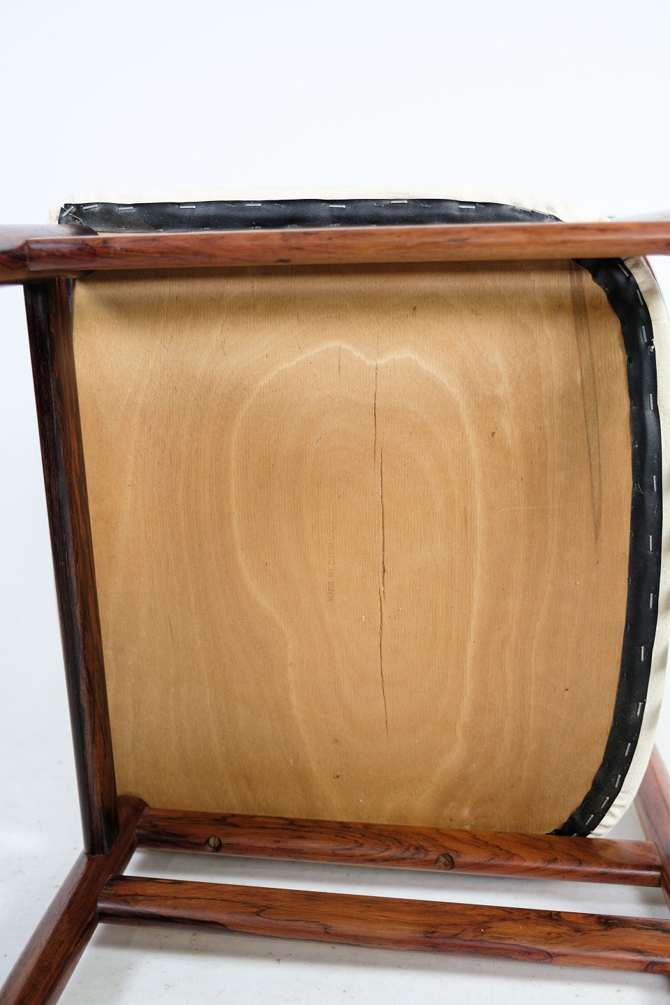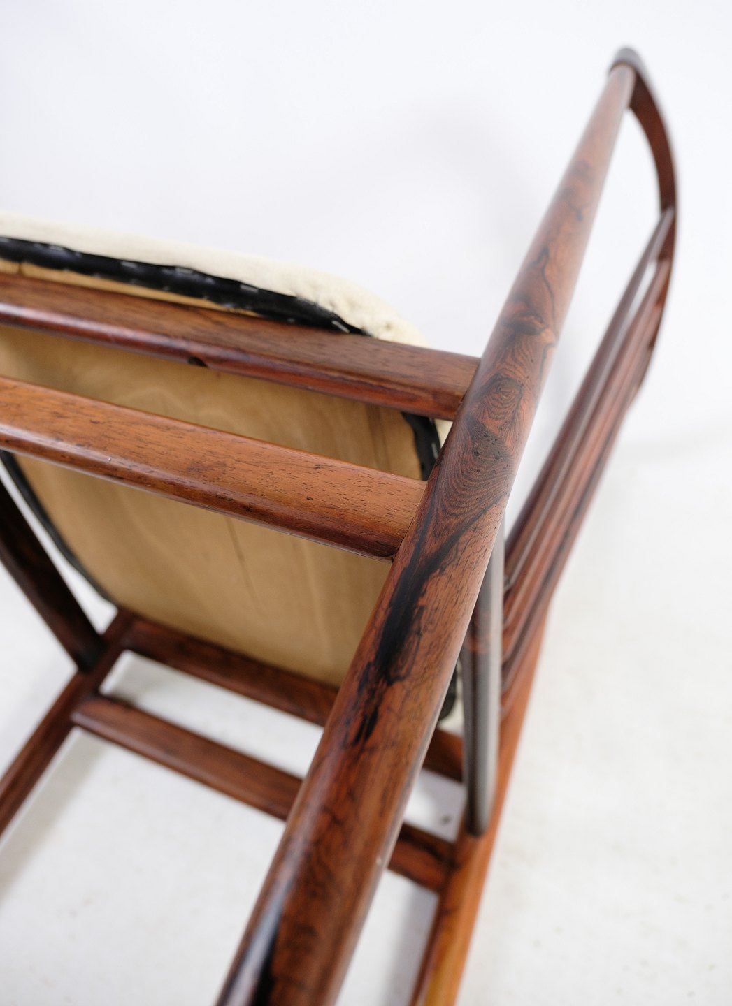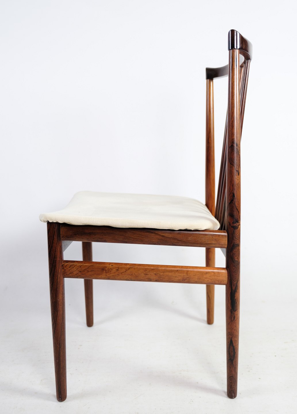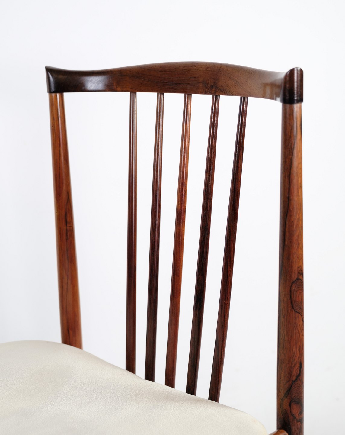 A set of four dining chairs in rosewood designed by Henning Sørensen in 1968. The chairs are in very good condition with light fabric.