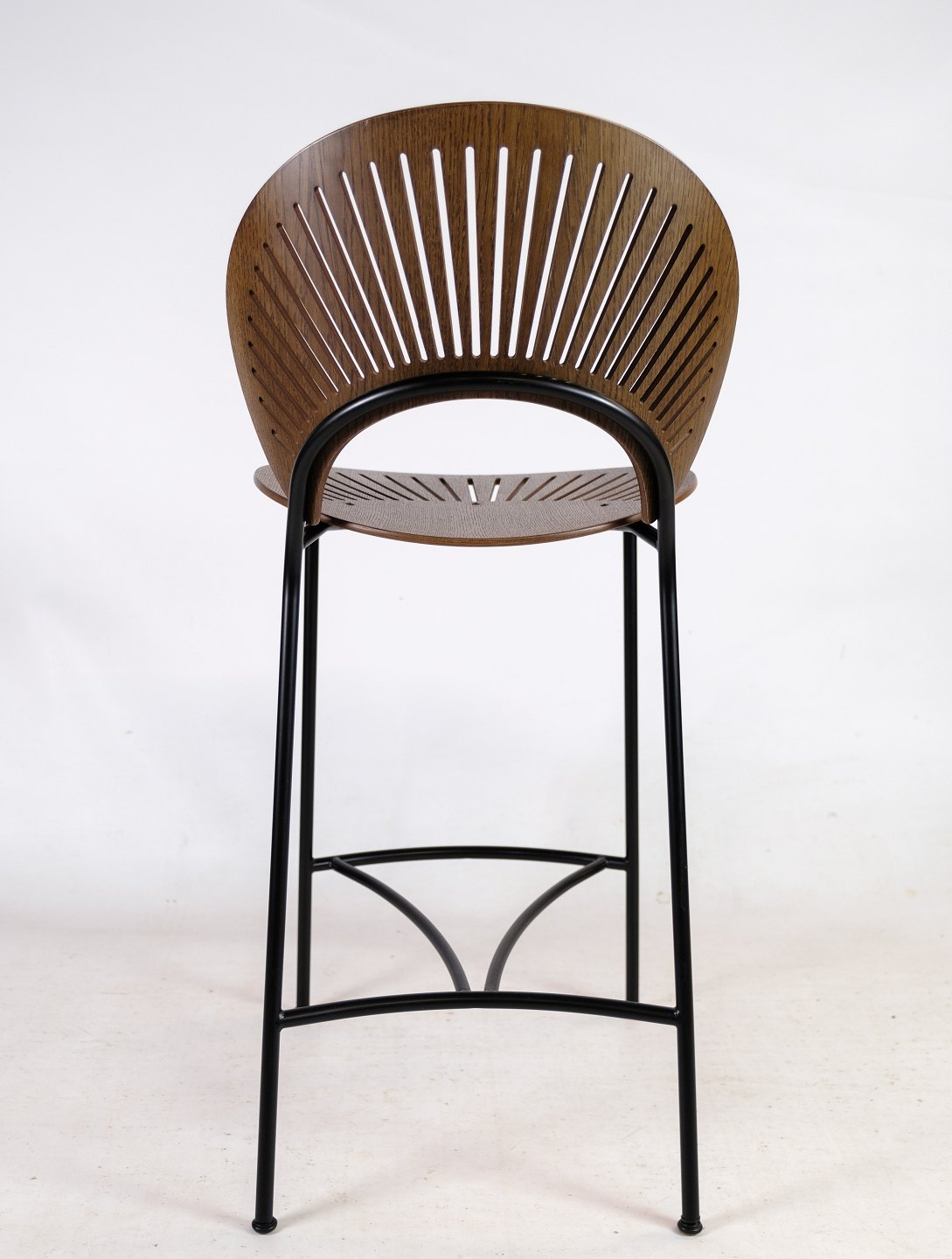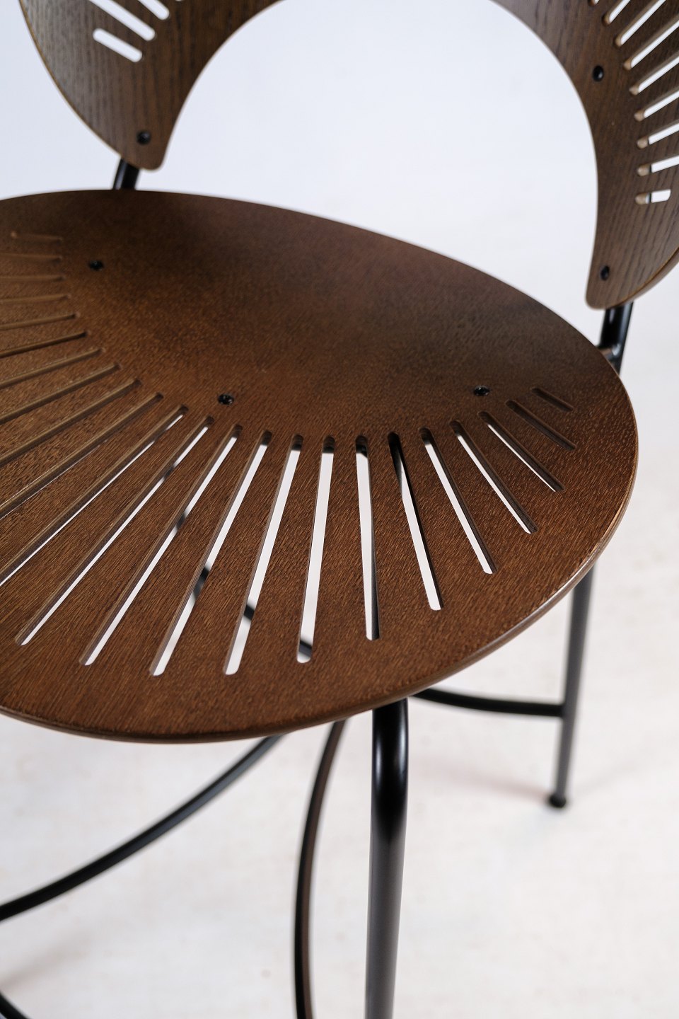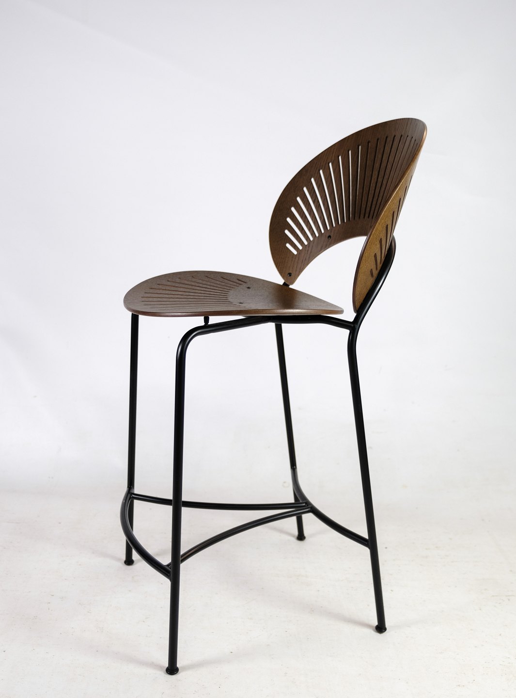 Trinidad barstol i bejdset egetræ, designet af Nanna Ditzel til Trinidad-serien i 1998. Den er fremstillet hos Fredericia Furniture. Stolen har en formidabel siddekomfort med dens kurvede ryg.