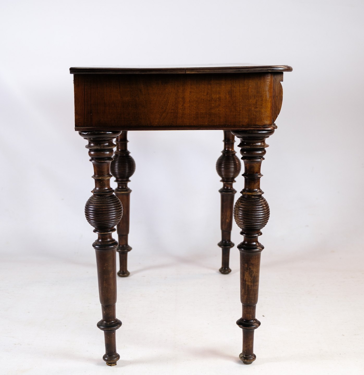 Dette skrivebord er et smukt eksempel på håndværk fra 1860'erne, lavet af ædel valnødtræ. Med sin klassiske og tidløse elegance udstråler det en autentisk charme, der bringer historien om fortidens håndværk til live.