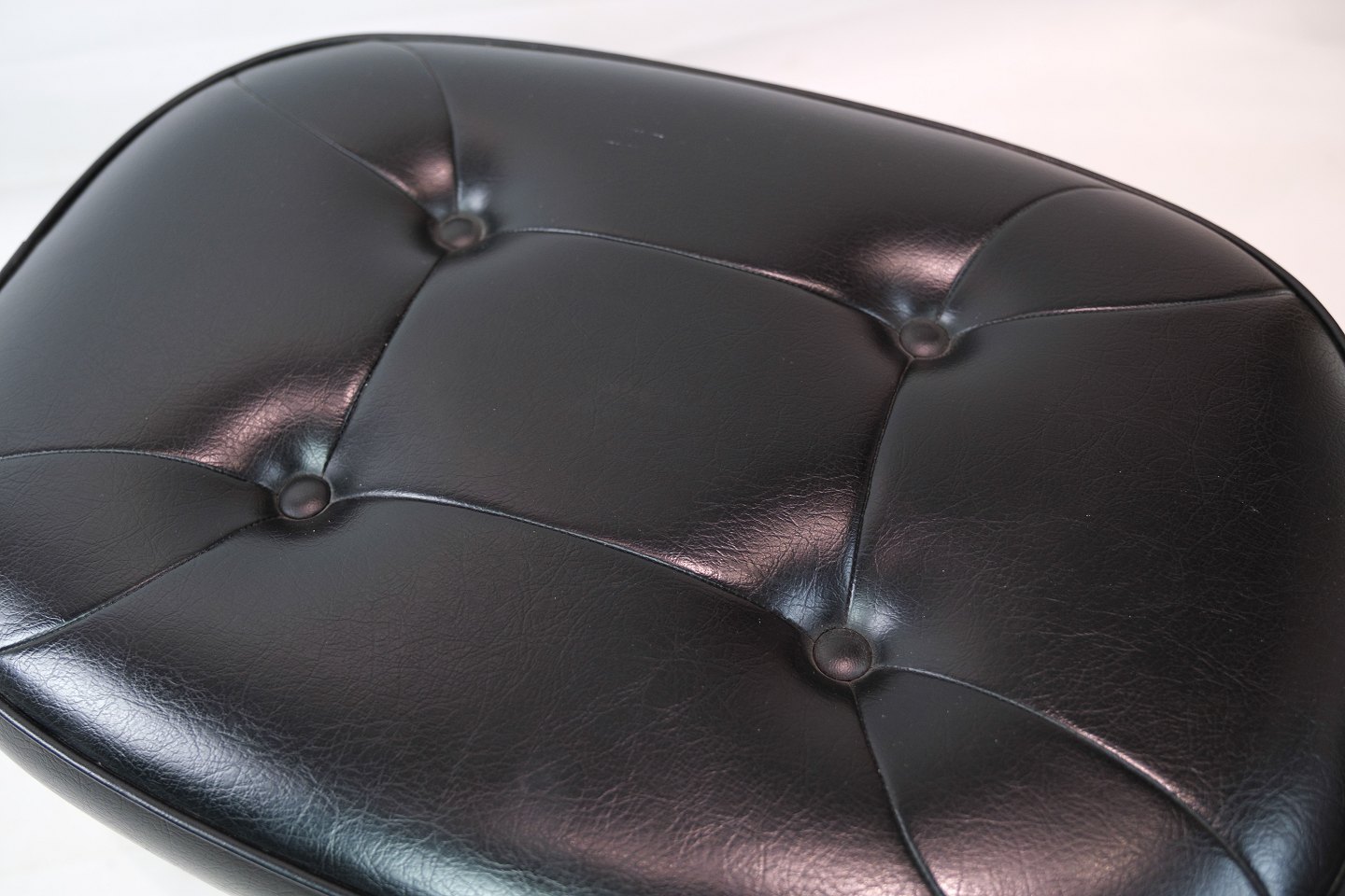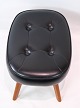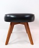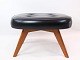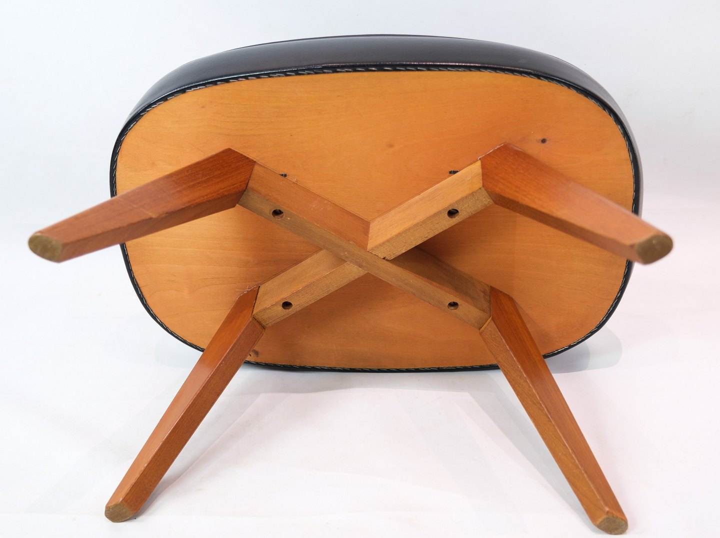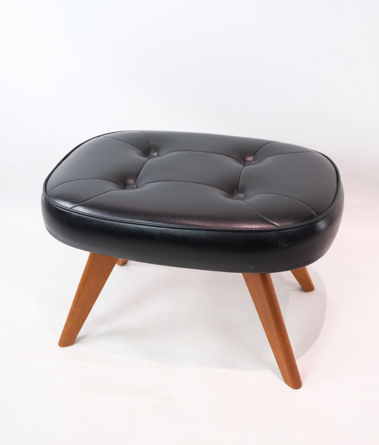 Skammel - Dansk Design - Sort Læder - Ben I Teak - 1960